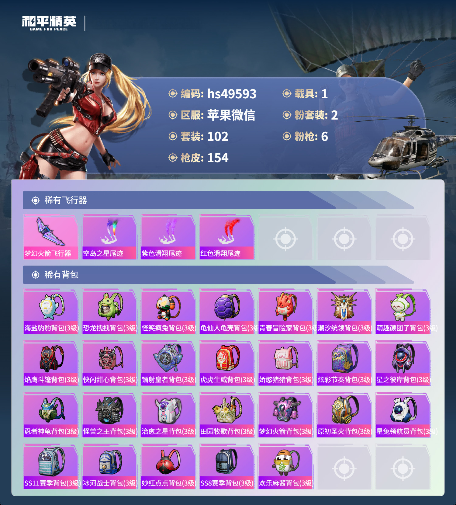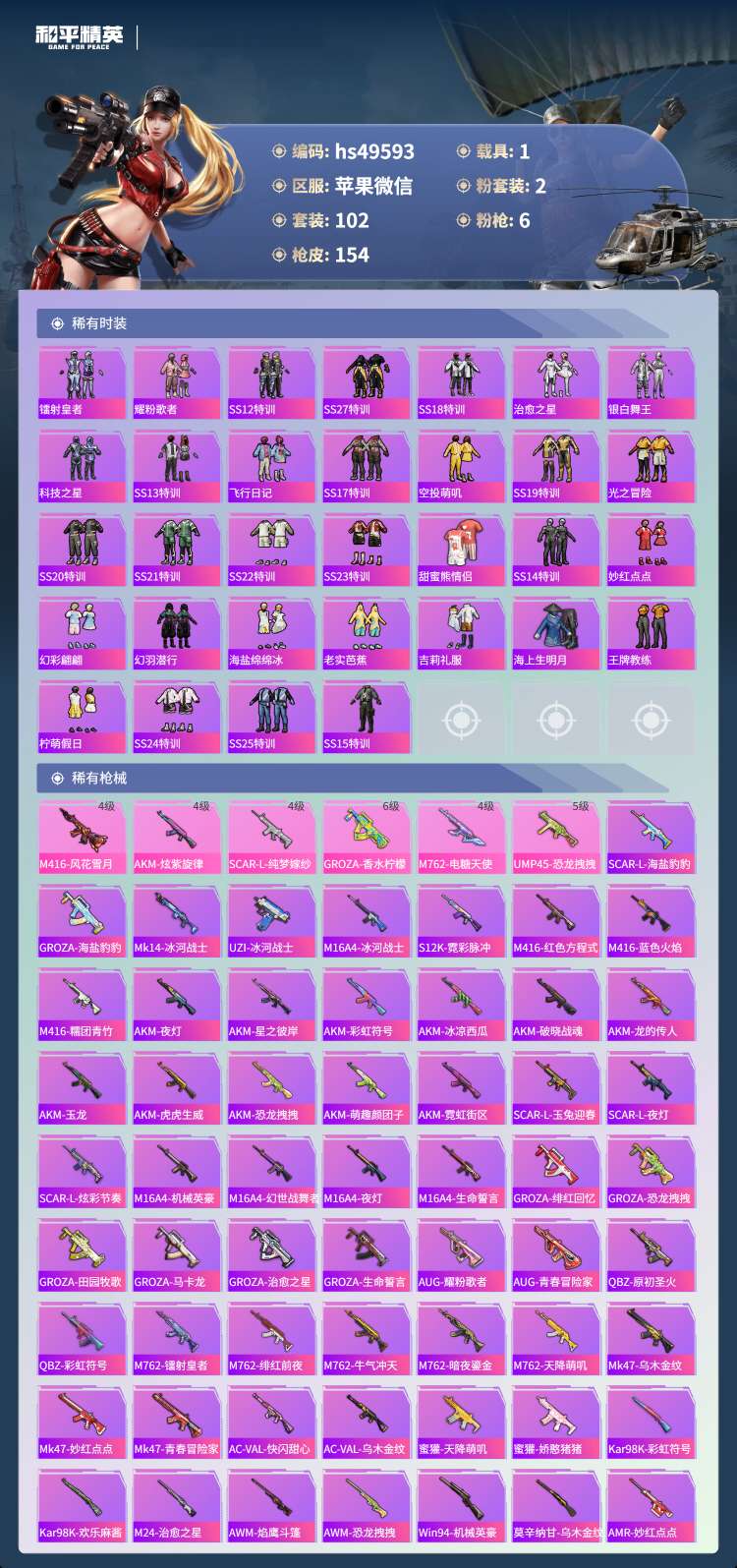 hs49593 苹果v-14王牌印记-2粉装-6特效枪-1载具-48467热力值-102套装-15