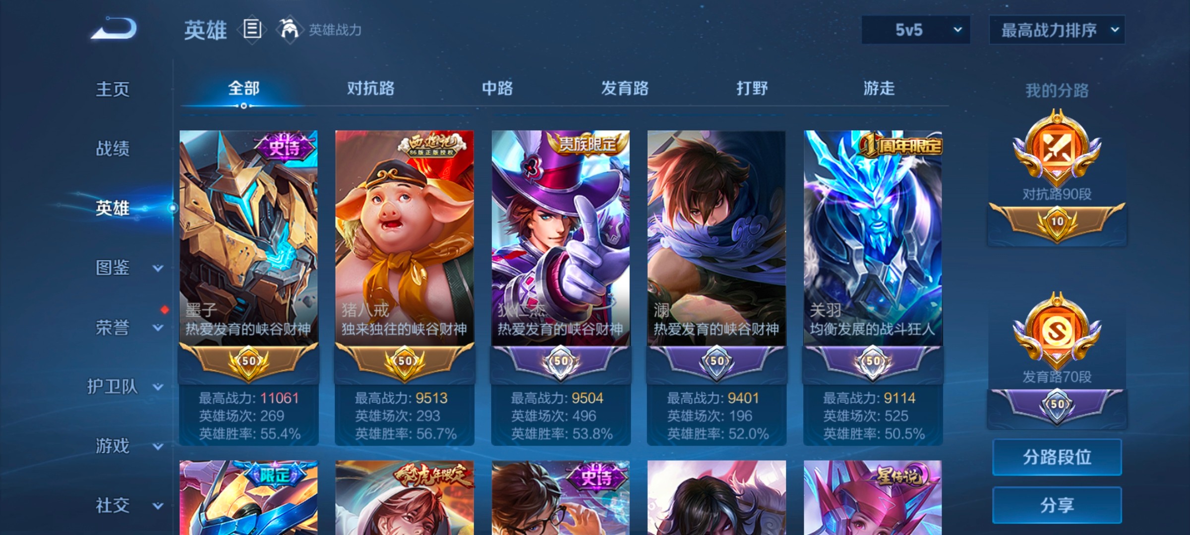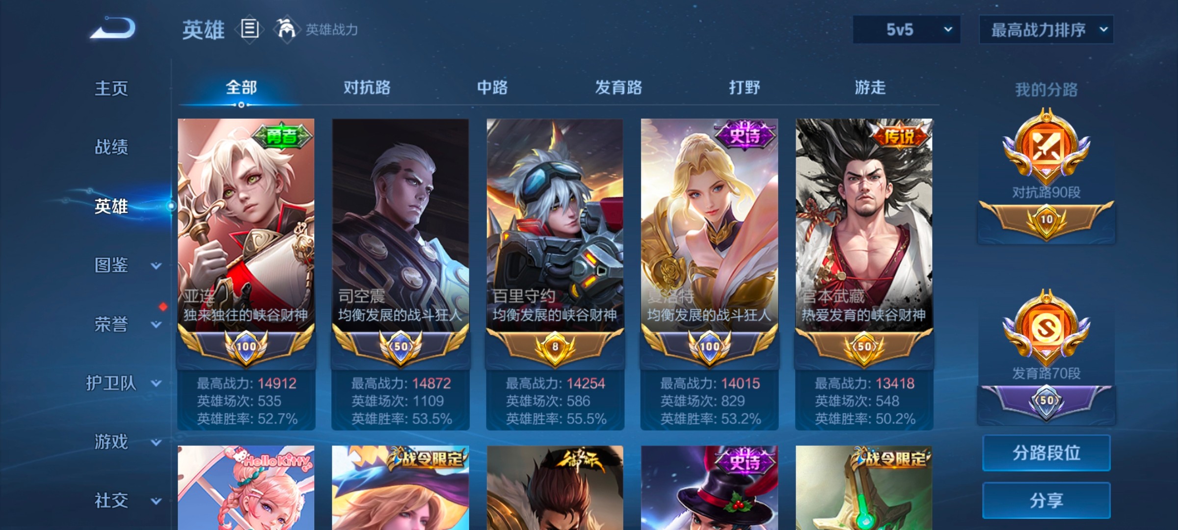 弈游104440,aq百星魔方335皮,90段对抗70段发育62段打野,16个万战英雄其中6小国1.