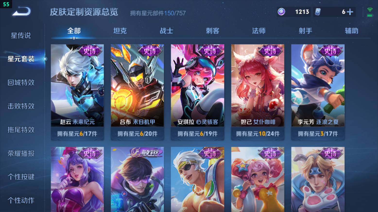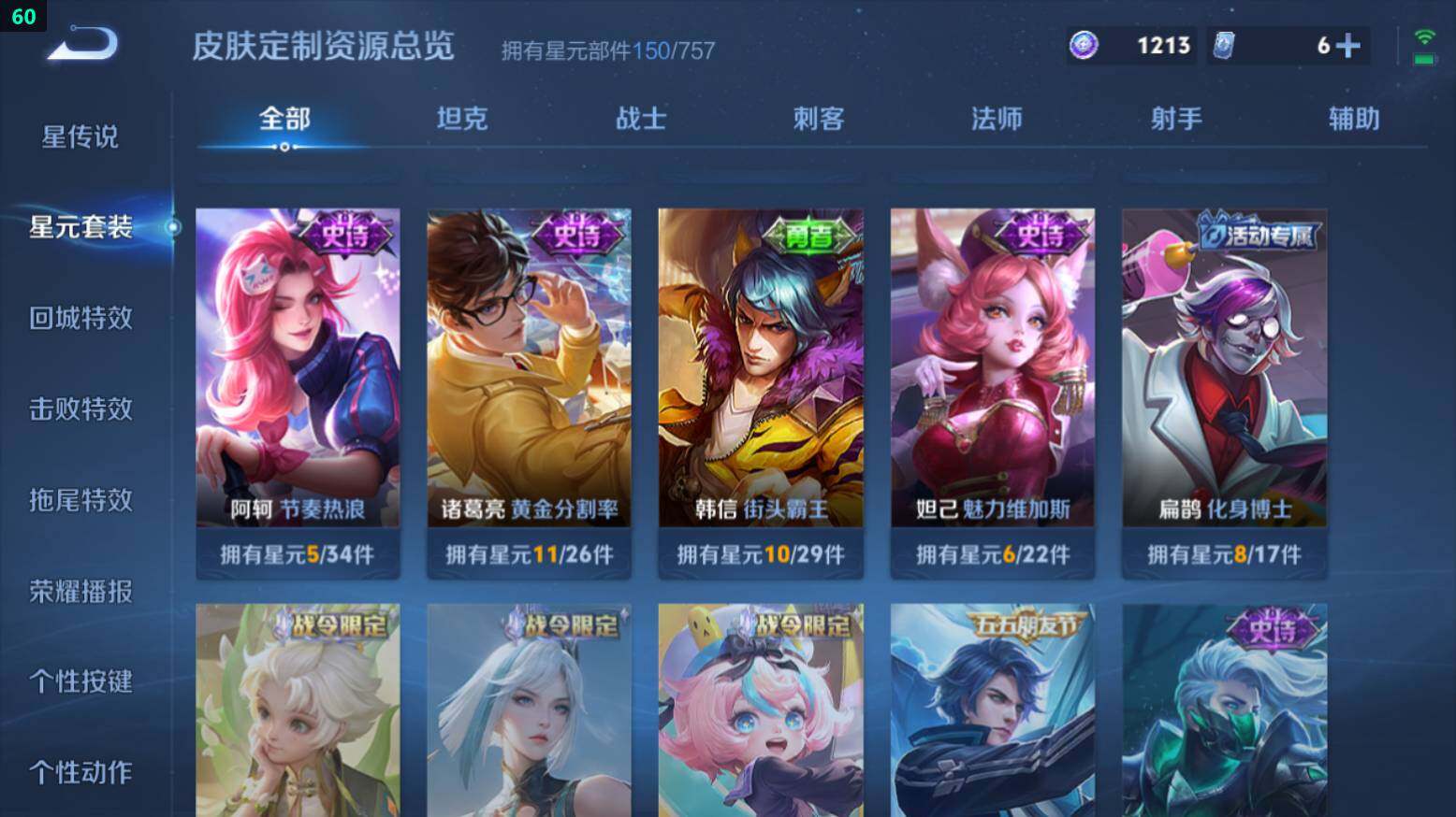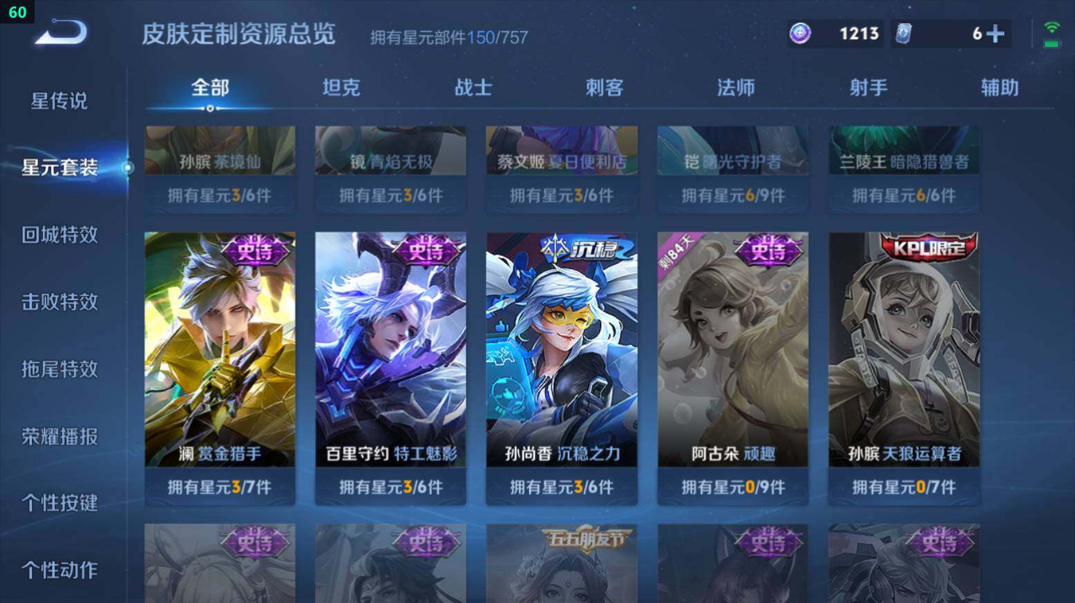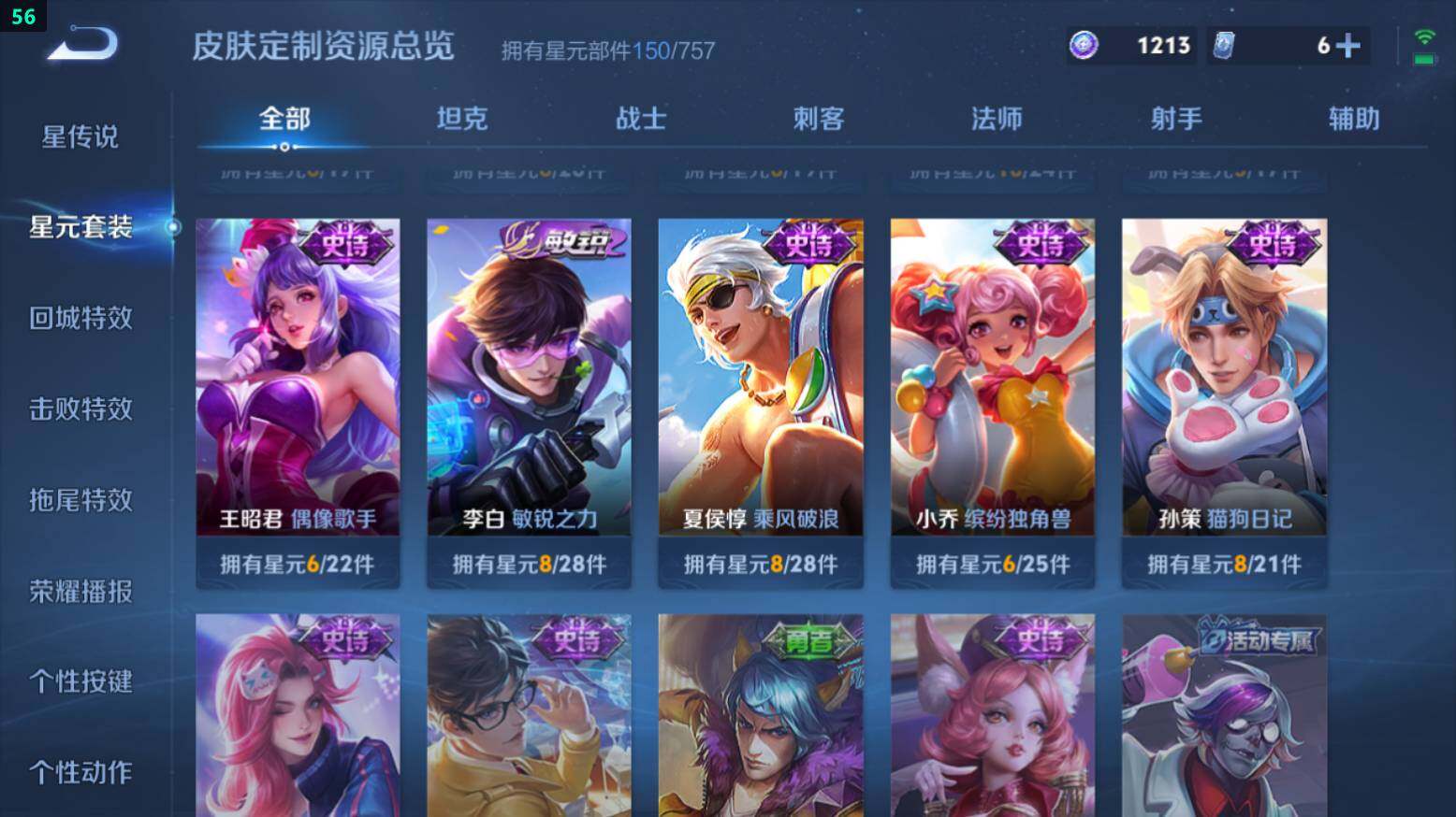 王者荣耀【安卓QQ】安卓Q-V7-265皮肤-1典藏-15传说-61史诗-2星传说