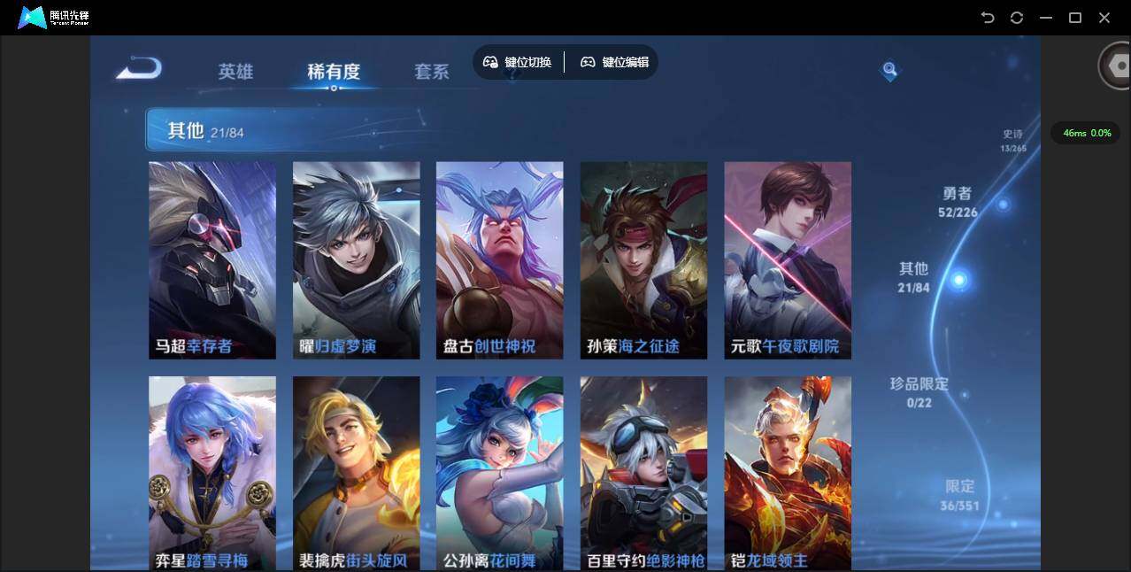 王者荣耀【安卓QQ】实名: 可修改 贵族等级: V5 英雄数: 108 皮肤数: 90 传说皮: