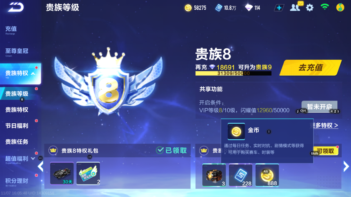 魅娅世界之蛇A车数量9游戏等级50贵族等级8车皮肤数量5安卓