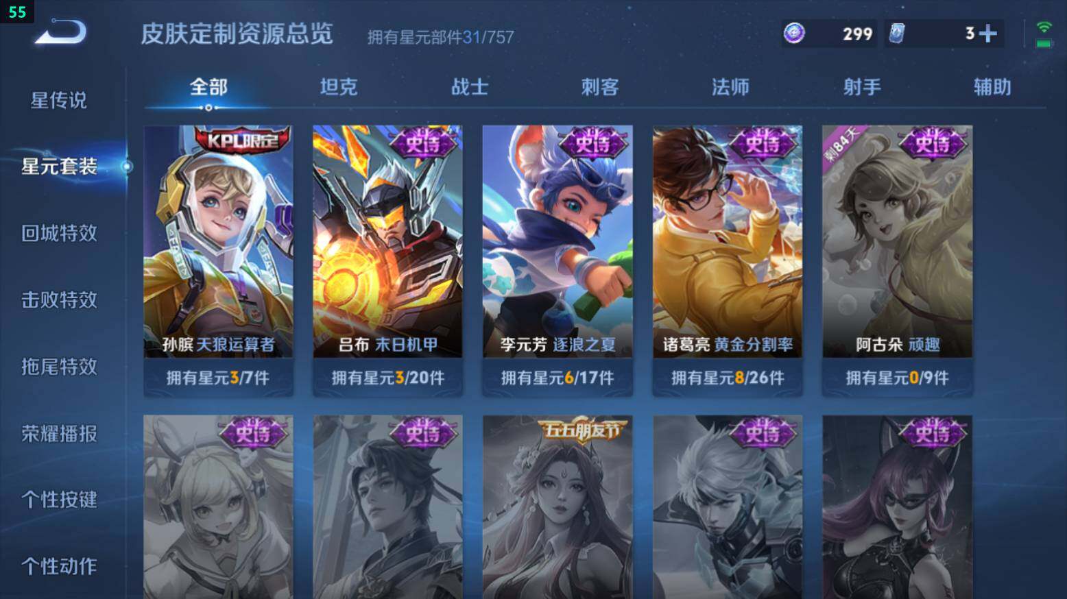 【限定皮肤】:狄仁杰阴阳师,赵云皇家上将,孙膑天狼运算者,元歌云间偶戏,狄仁杰魔术师,狄仁杰万华元夜,项羽海滩派对,老夫子醍醐杖,貂蝉遇见胡旋,程咬金演武夺筹,亚瑟潮玩骑士王,虞姬霸王别姬,钟馗驱傩正仪,干将莫邪冰霜恋
