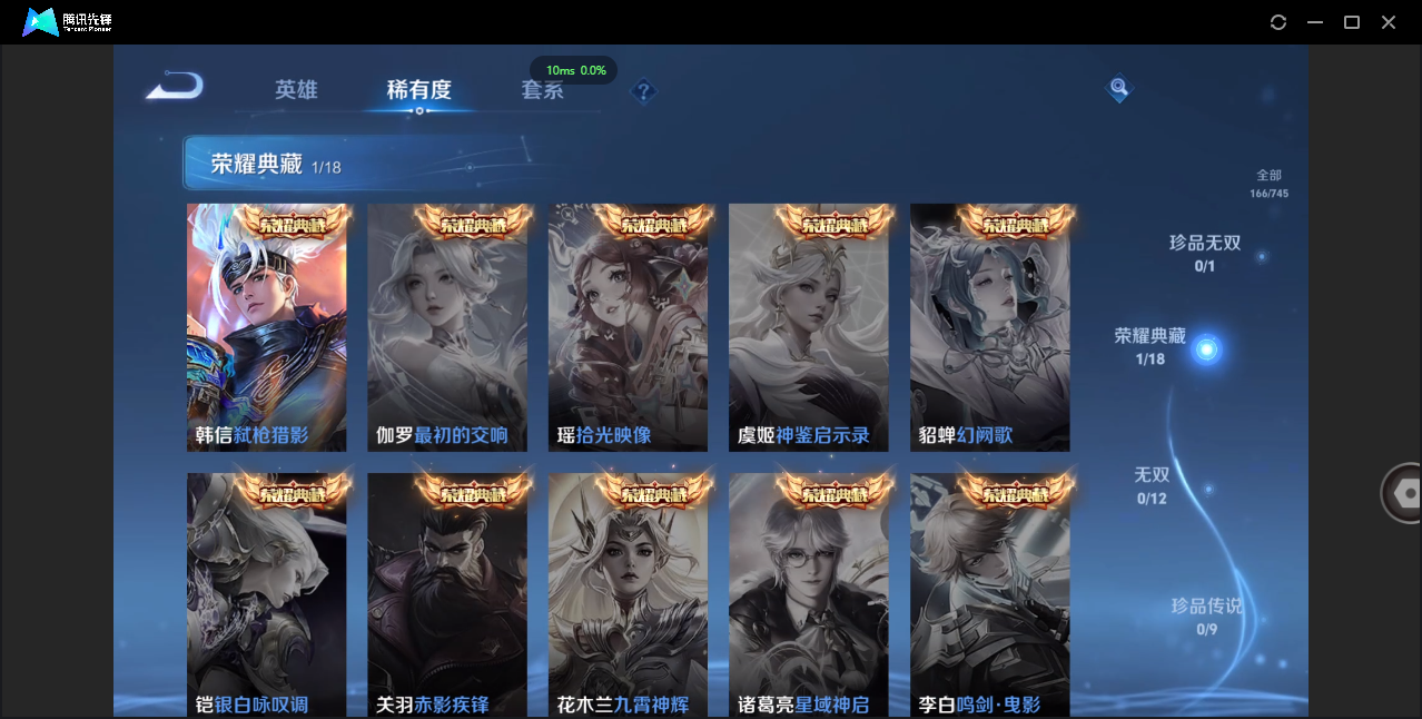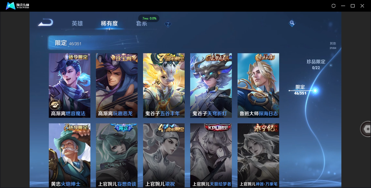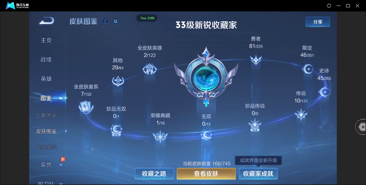 王者荣耀【安卓QQ】可二次-贵7-124英雄-166皮肤-1典藏-10传说