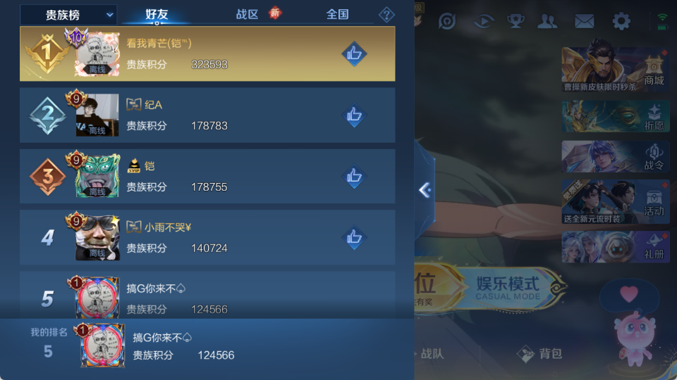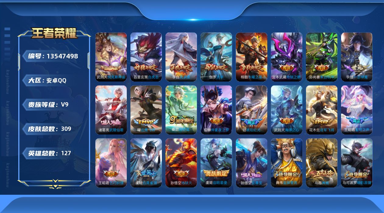 王者荣耀【安卓QQ】【13547498】[13547498]实名: 可修改 贵族等级: V9 英雄