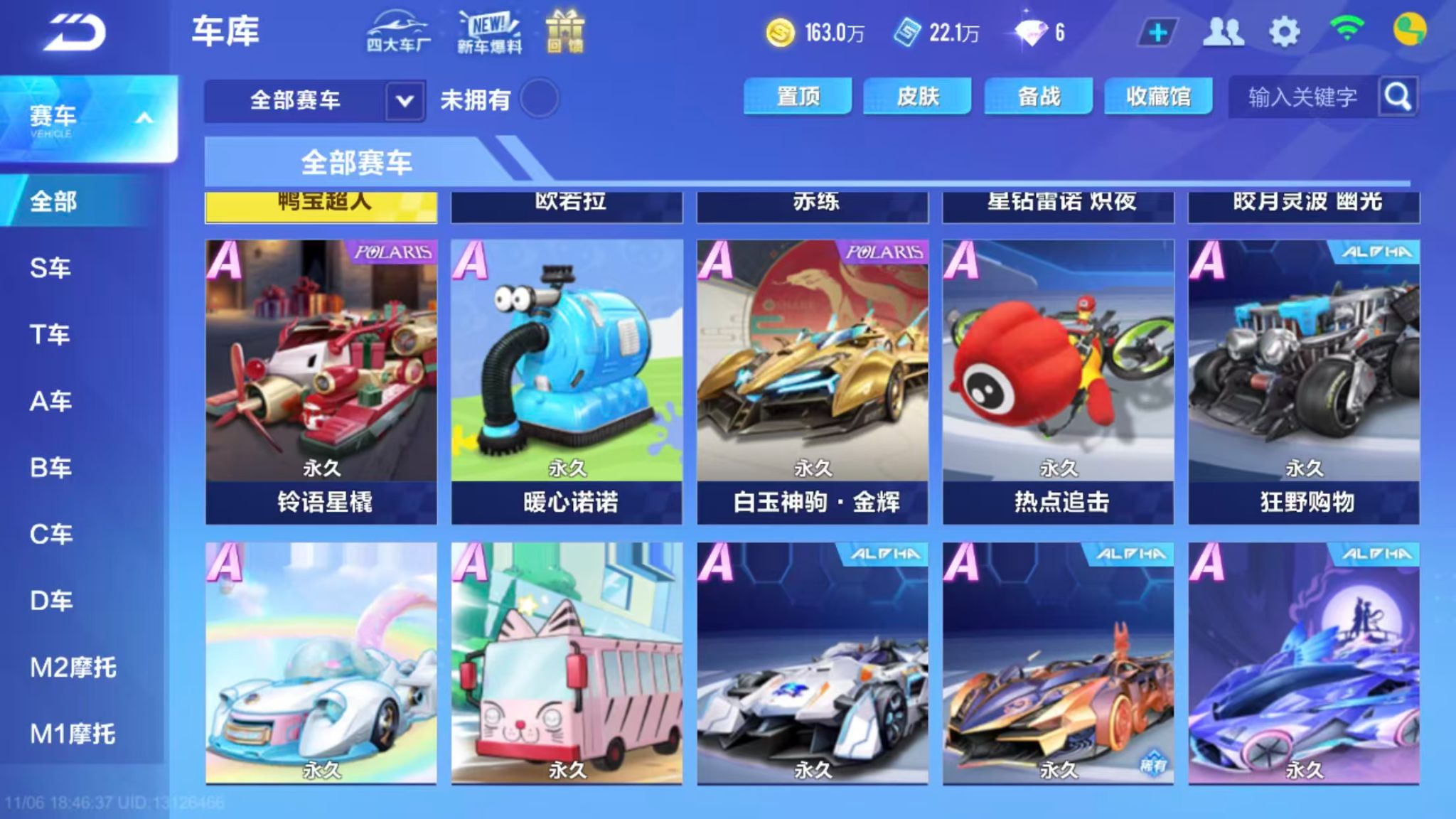 云霄隐鹤+幻星月影2联赛A车数量49游戏等级80贵族等级8车