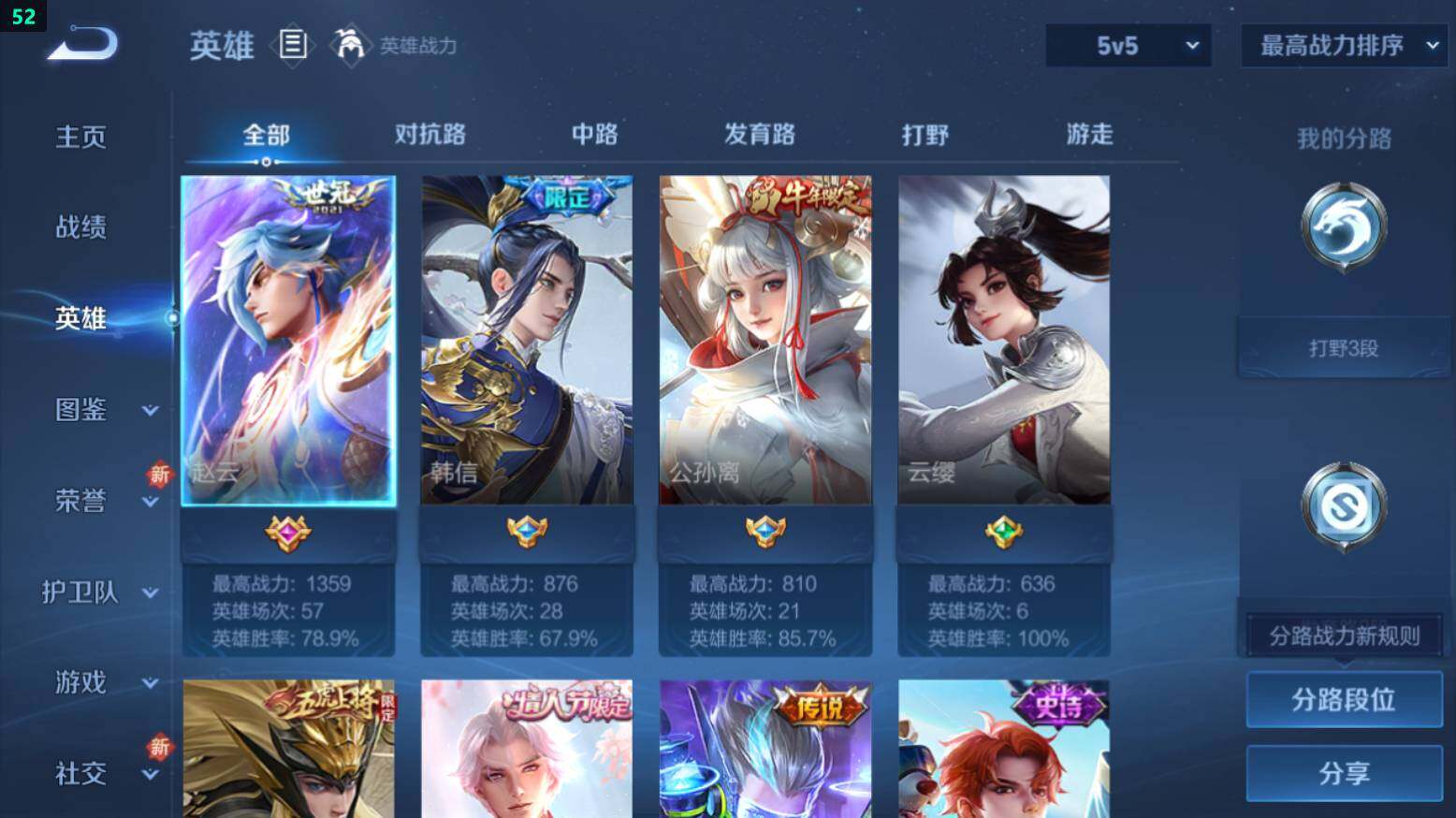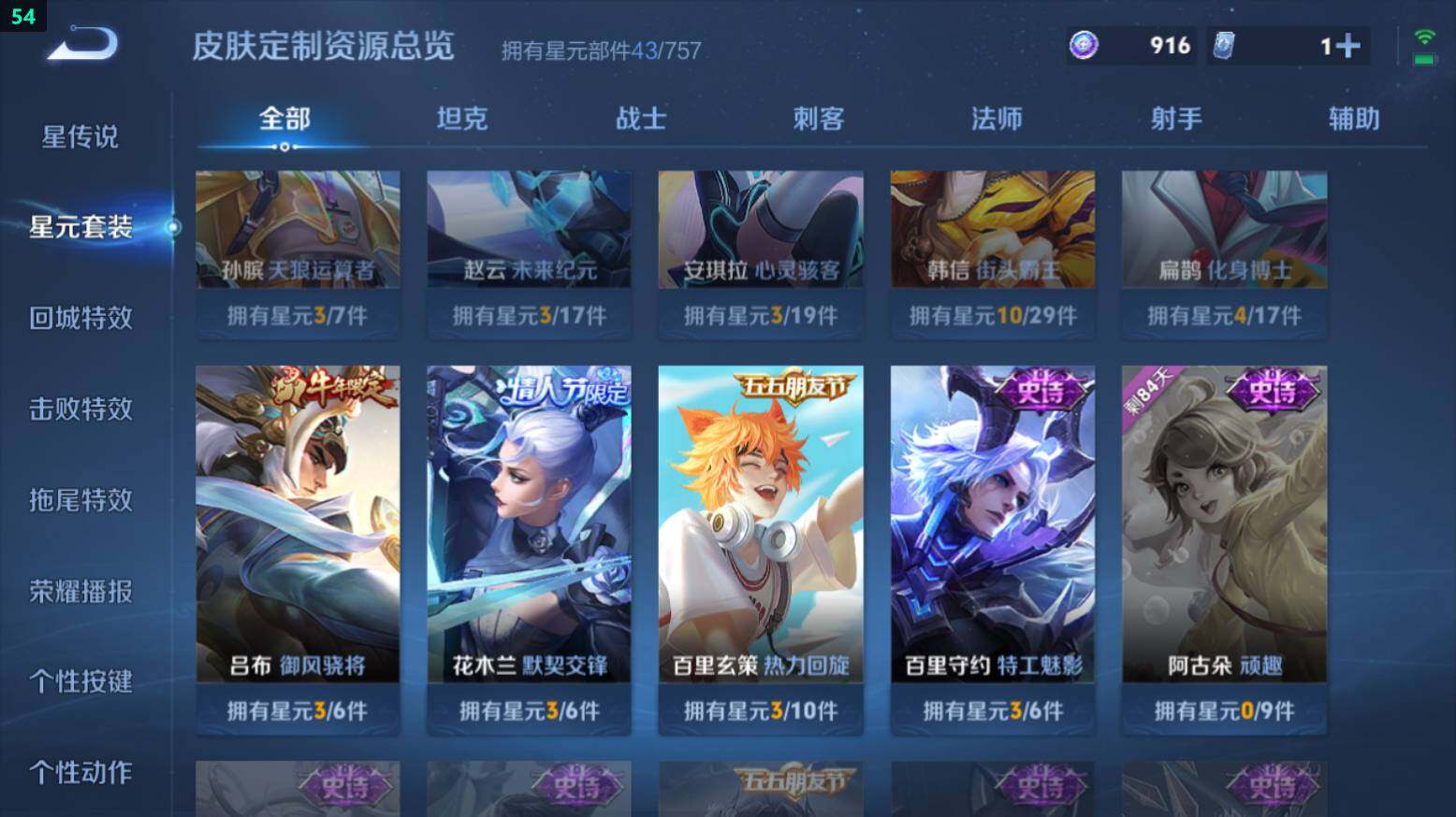 营地账号:1847968186/安卓Q-V7-54皮肤-6传说-20史诗