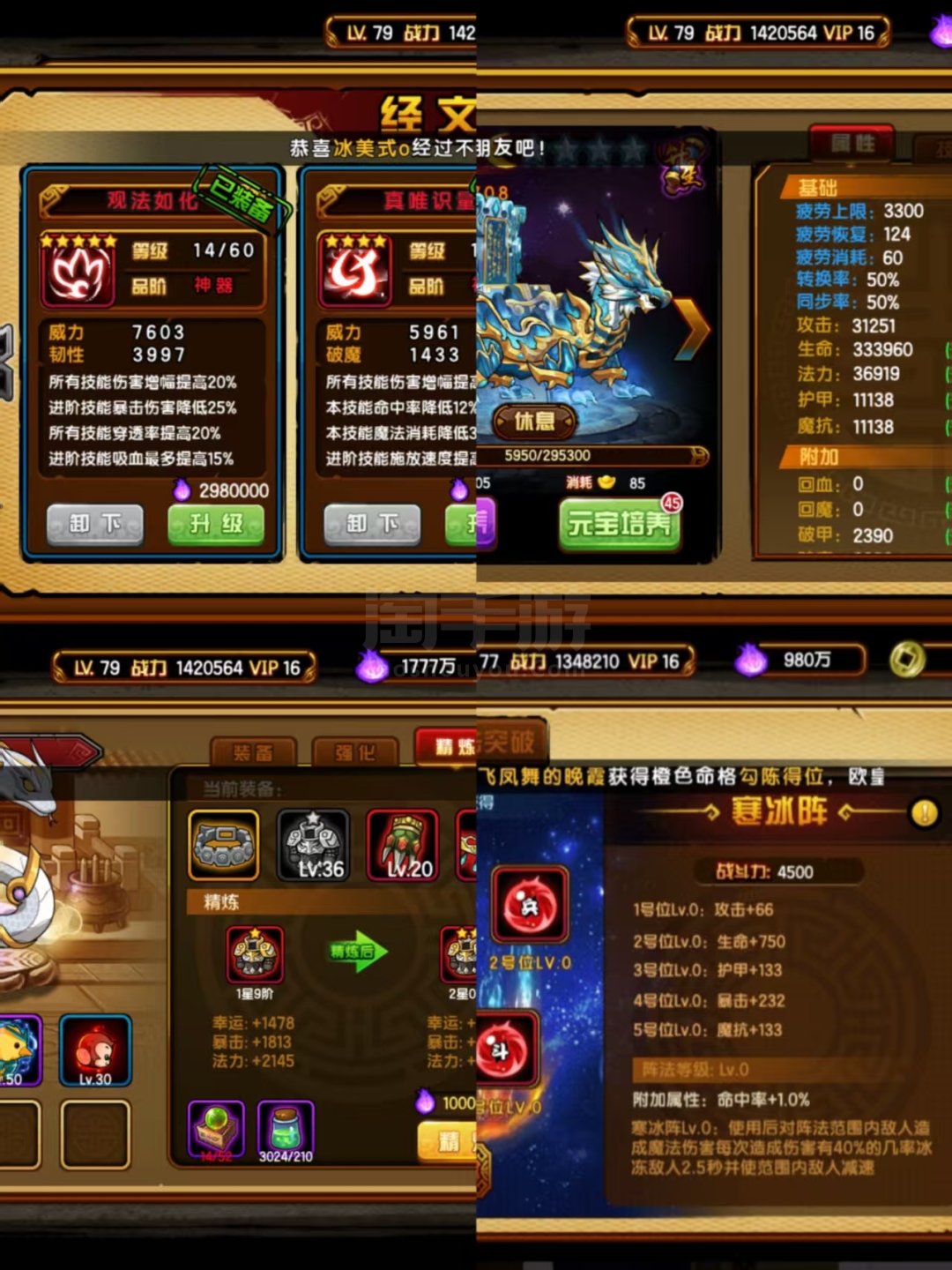 红青龙出货3个,氪了4天地,寒冰阵,雷劫阵,391,