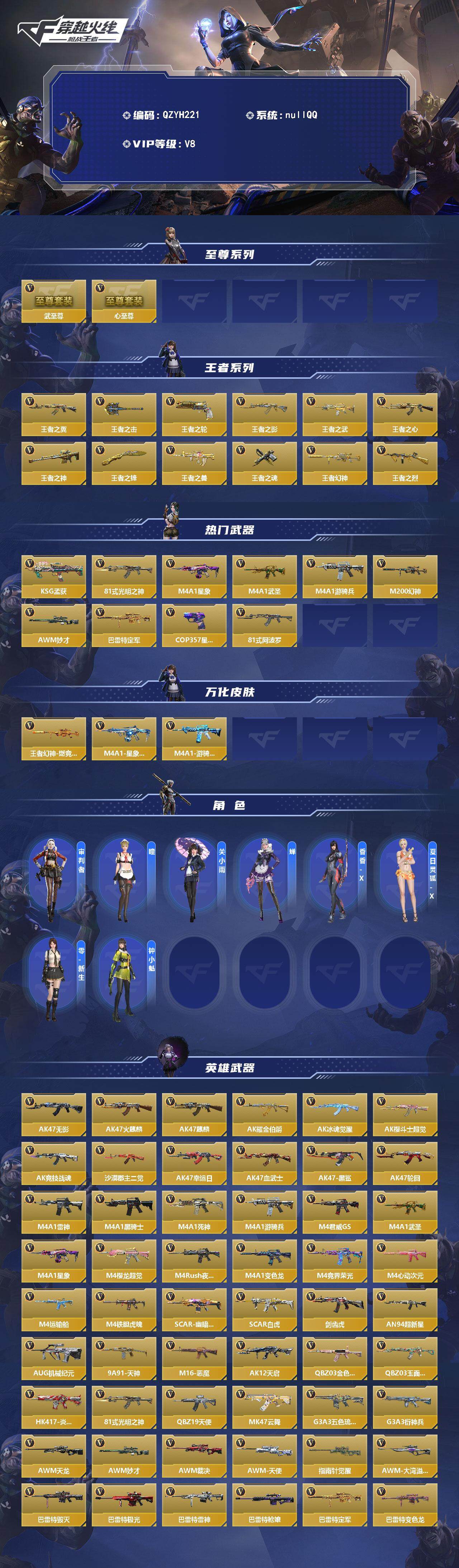 【QZYH221】VIP8/213V/武至尊/心至尊/王者之翼/王者之击/王者之轮/王者之影/王者之武/王者之心/王者之神/王者之锋/王者之魂/王者幻神/王者之烈/王者之兽/KSG-孟获/81式-光明之神/M4A1-星象/M4A1-武圣/M4A1-游骑兵/M200-幻神/AWM-妙才/巴雷特-定军/COP 357-星象/81式-阿波罗/王者幻神-燃竞之巅/M4A1-星象-璀璨星辰·青龙/M4A1-游骑兵-寒霜/审判者/瞳/关小雨/蝉/香香X/夏日灵狐-X/零-新生/钟小魁/AK47-无影/AK4