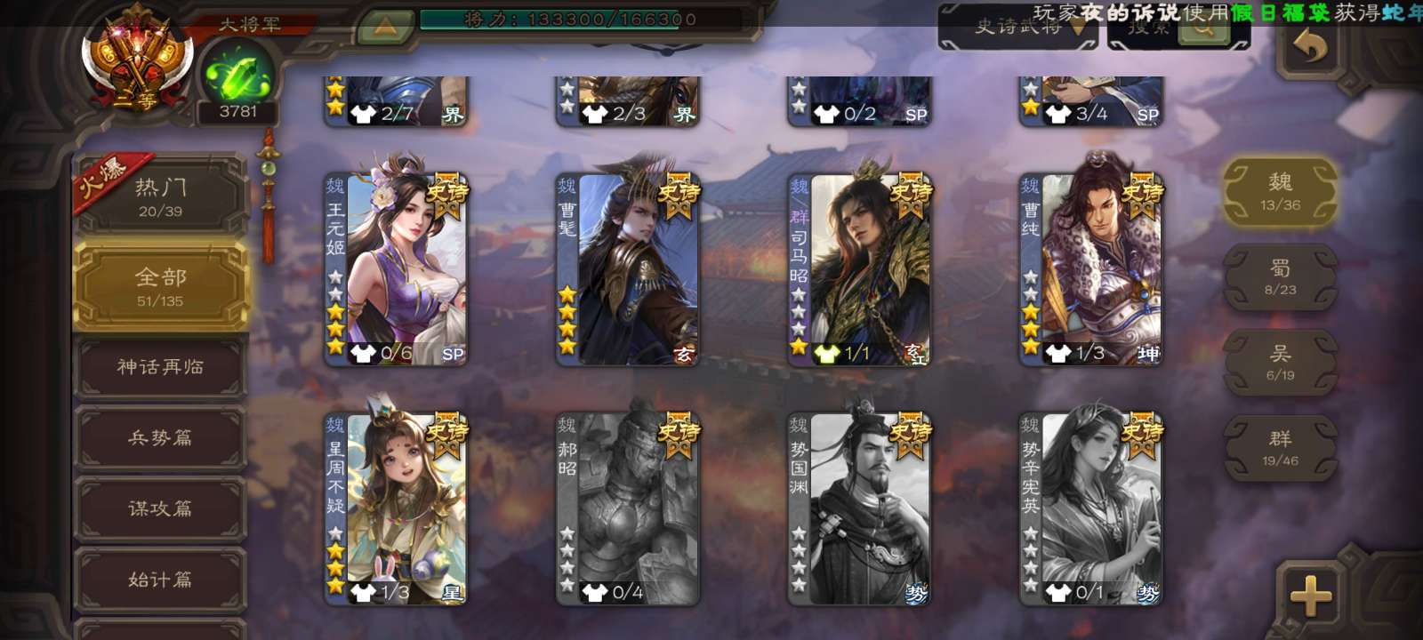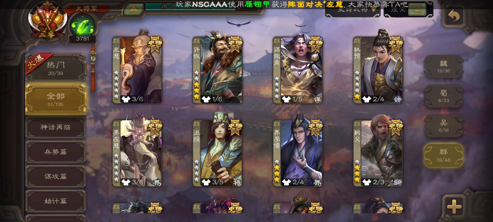 三国杀【安卓官方】炎龙刘焉神郭嘉大将军