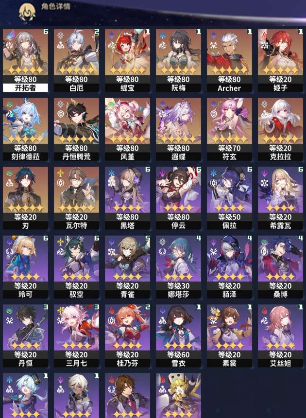 崩坏:星穹铁道【安卓官方】33黄,2命白厄,1命缇宝,瑕蝶,刻律,风堇,1命阮梅,1命Archer