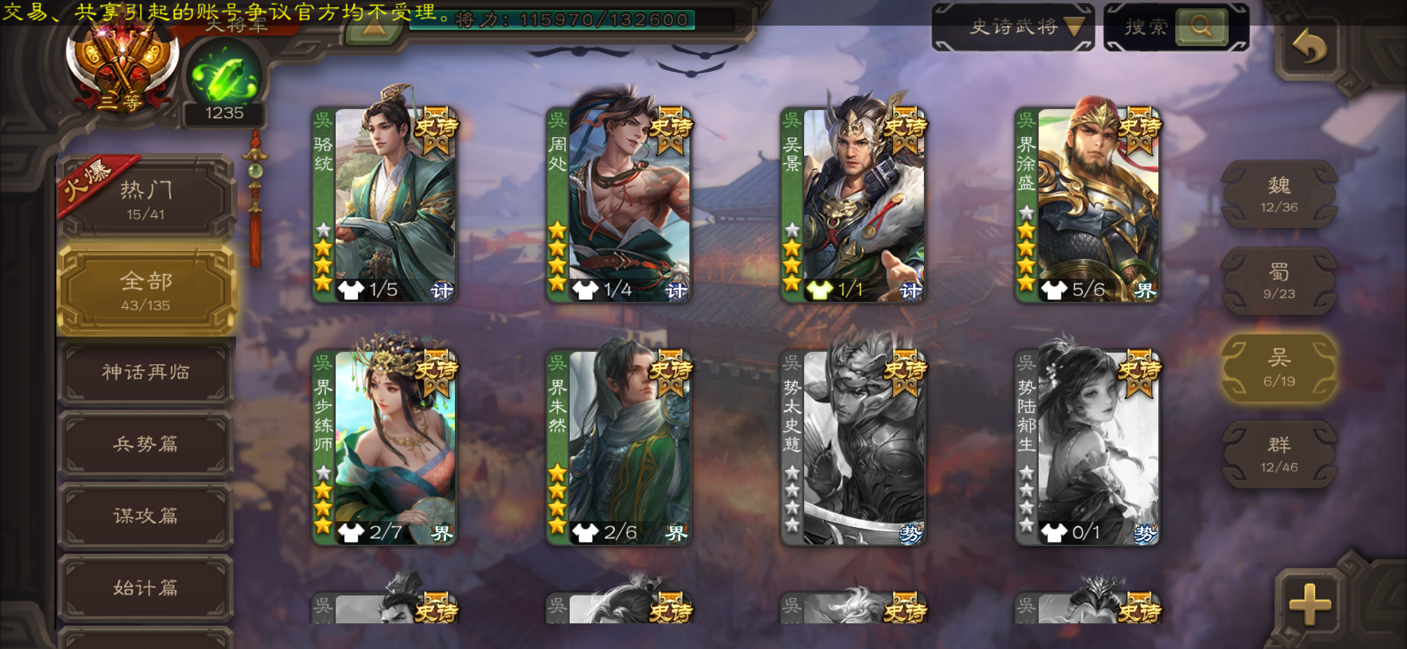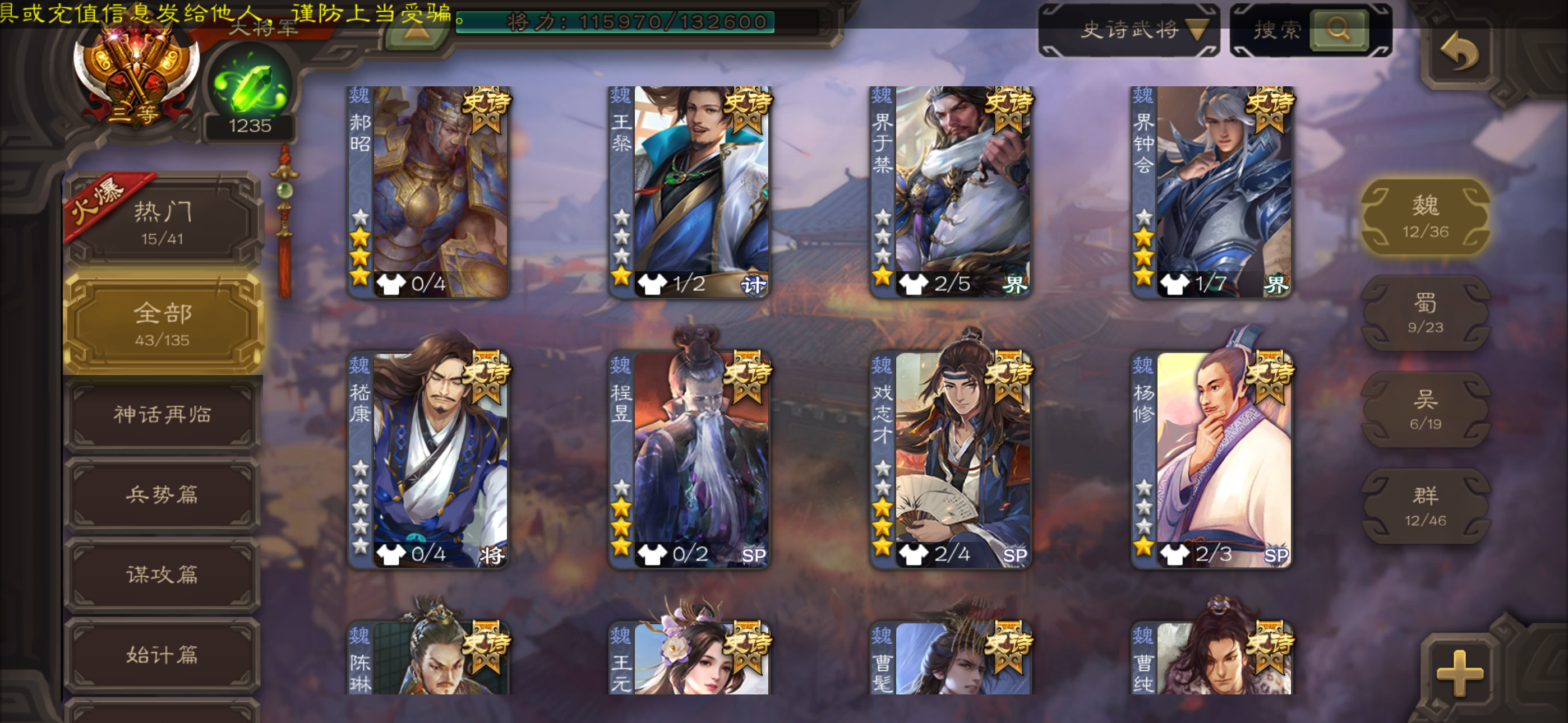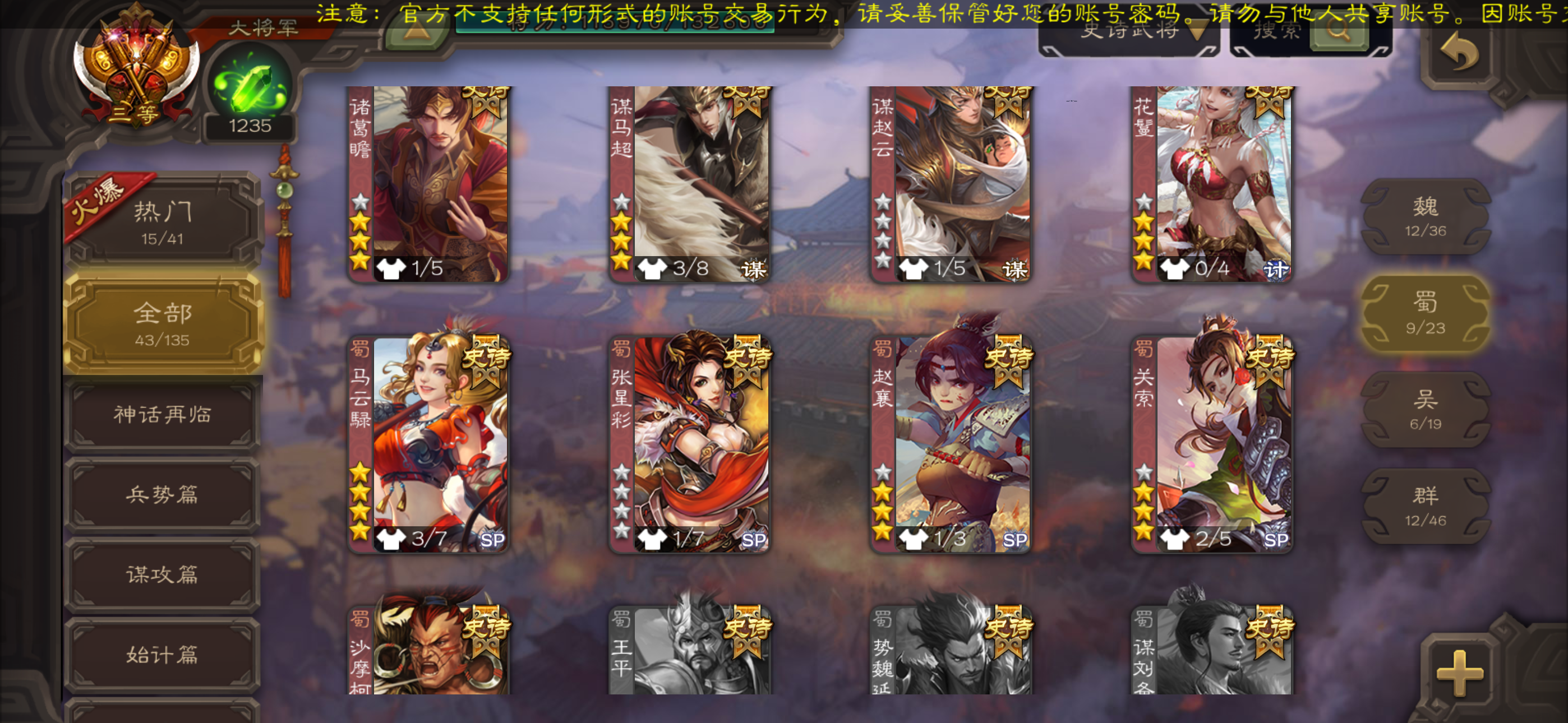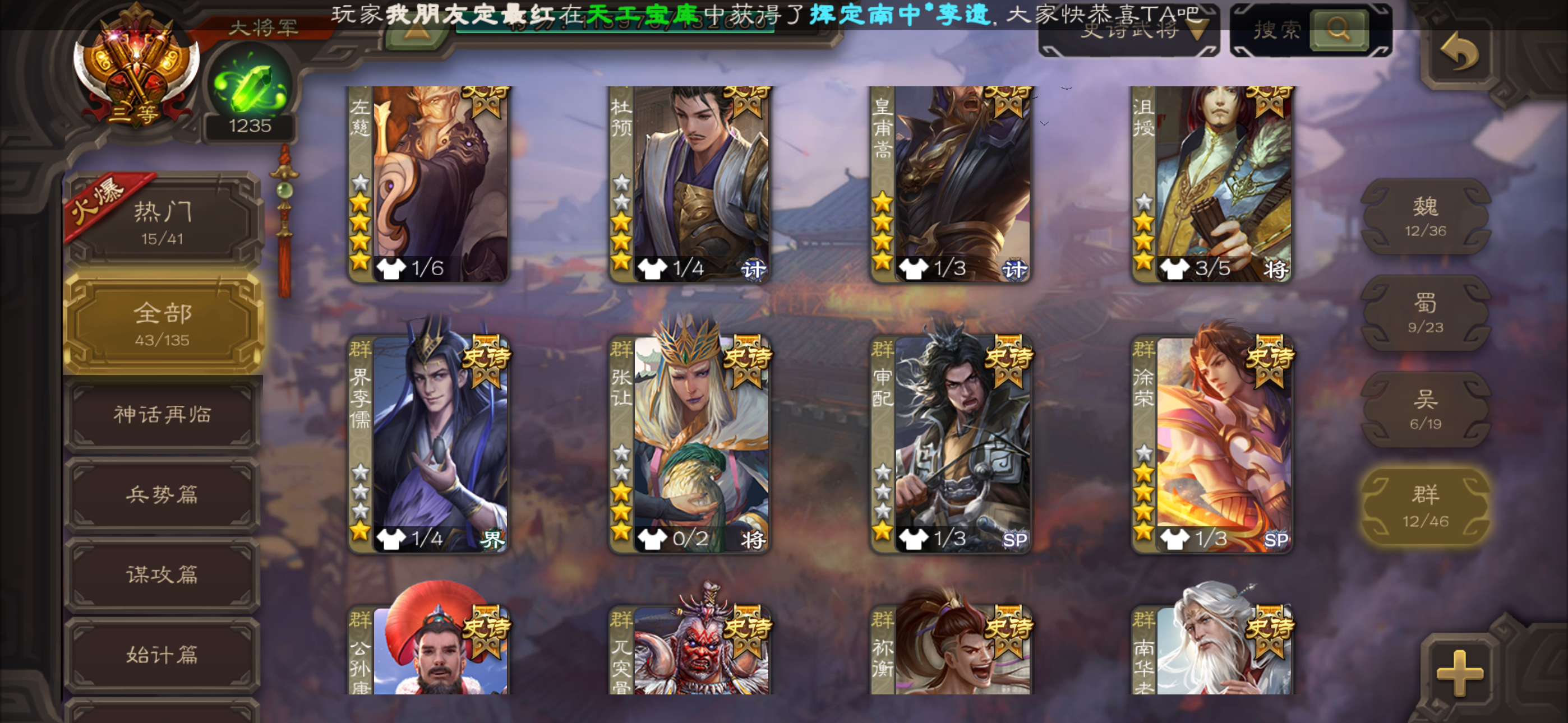史诗武将数量: