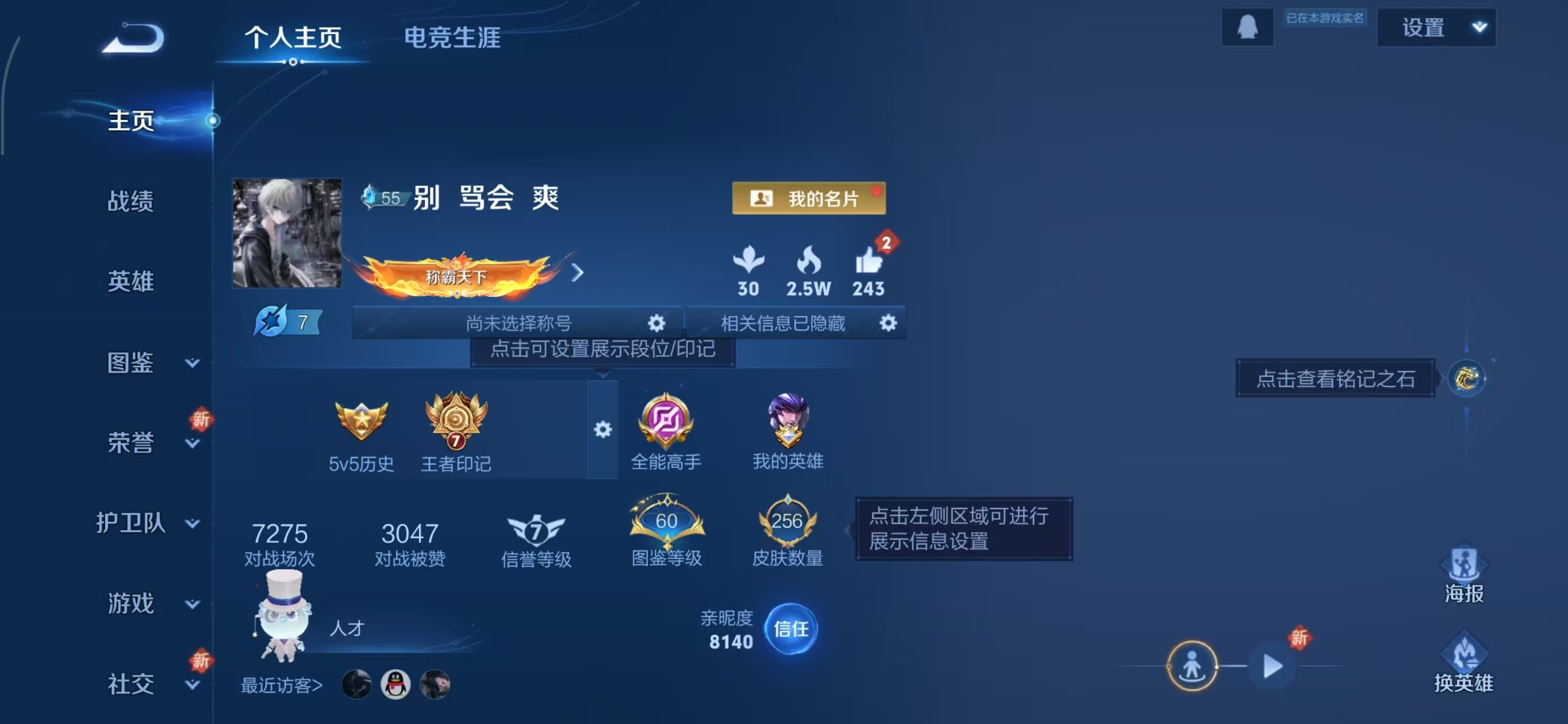 安卓QQ/永恒钻石/256皮肤/126英雄/1典藏/0珍品无双/1无双/1珍品传说/12传说/70史