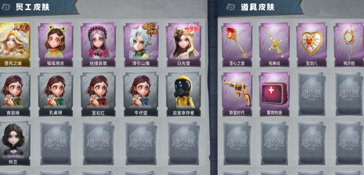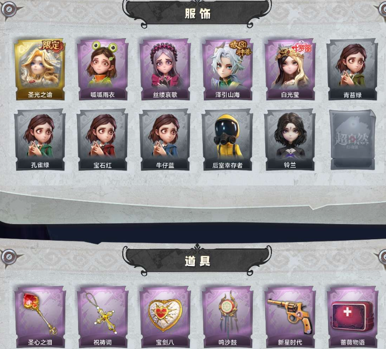 【道具皮肤】铲子-圣心之泪 腰包-宝剑八 摸金符-祝祷词 急救包-蔷薇物语 音响-鸣沙鼓 转轮手枪-新星时代