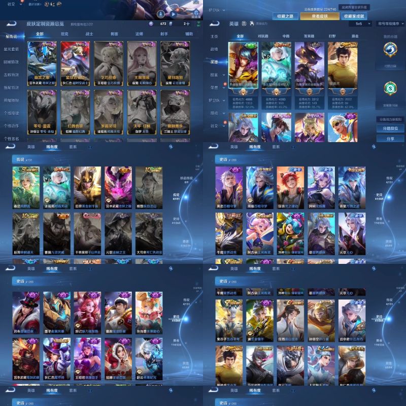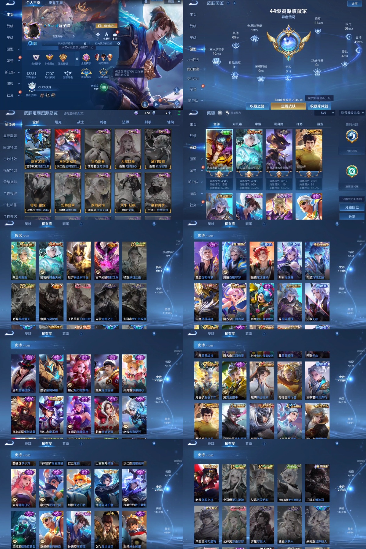王者荣耀【安卓QQ】【贵族6 传说皮肤4 史诗皮肤41 皮肤数量224】当前段位:钻石 贵族积分:13689 热门皮肤:时雨天司 黄金射手座 地狱之眼 鸣野嵩 万物之道 赏金猎手 孙行者 至尊宝