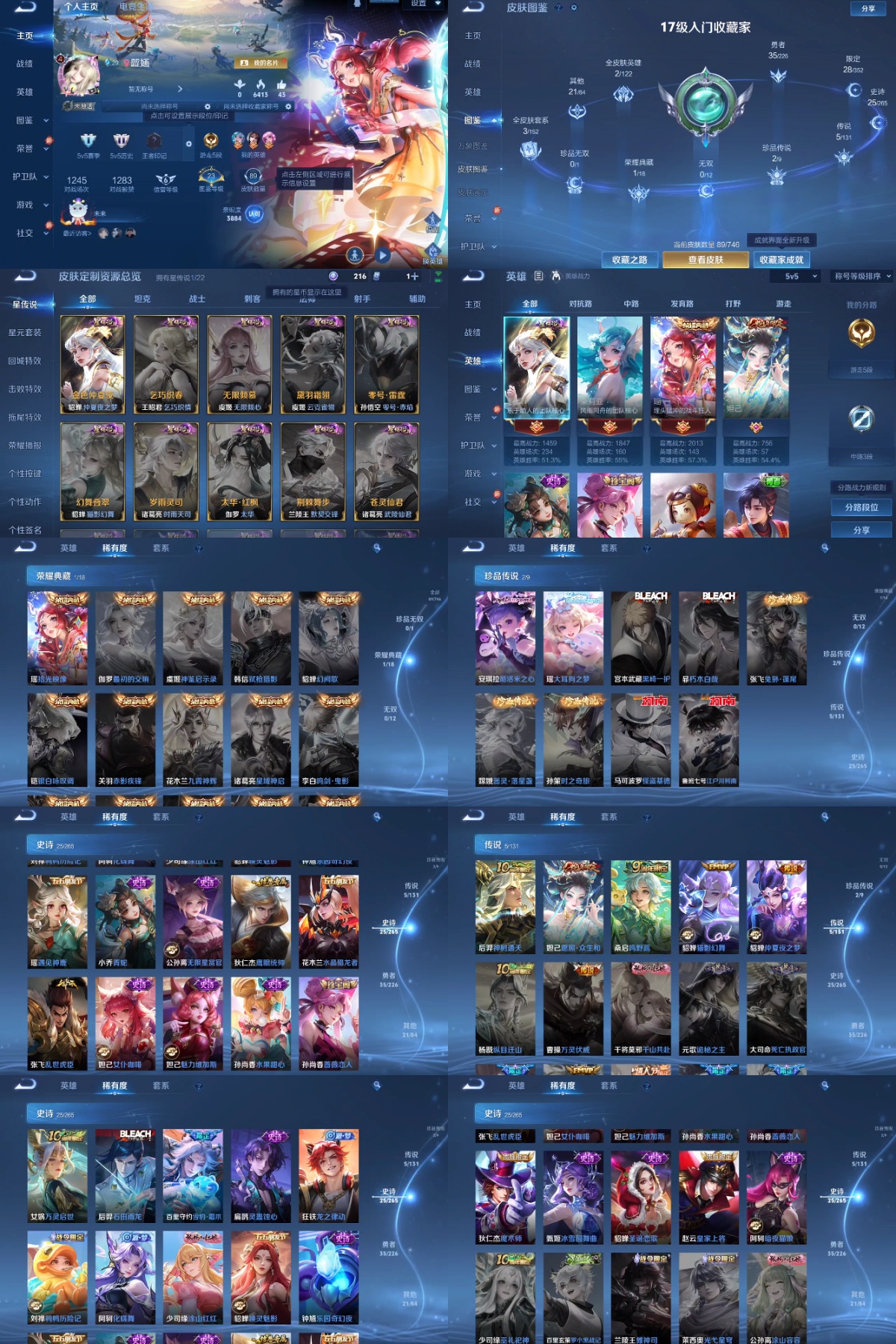 王者荣耀【安卓QQ】【贵族6 荣耀典藏1 珍品传说2 传说皮肤5 史诗皮肤25 皮肤数量89】当前段位:铂金 贵族积分:10319 热门皮肤:时光映像 酷洛米之心 大耳狗之梦 神树通天 愿照众生和 鸣野嵩 猫影幻舞 仲夏夜之梦 雪豹霜爪 灵蛊蚀心 遇见神鹿 青蛇