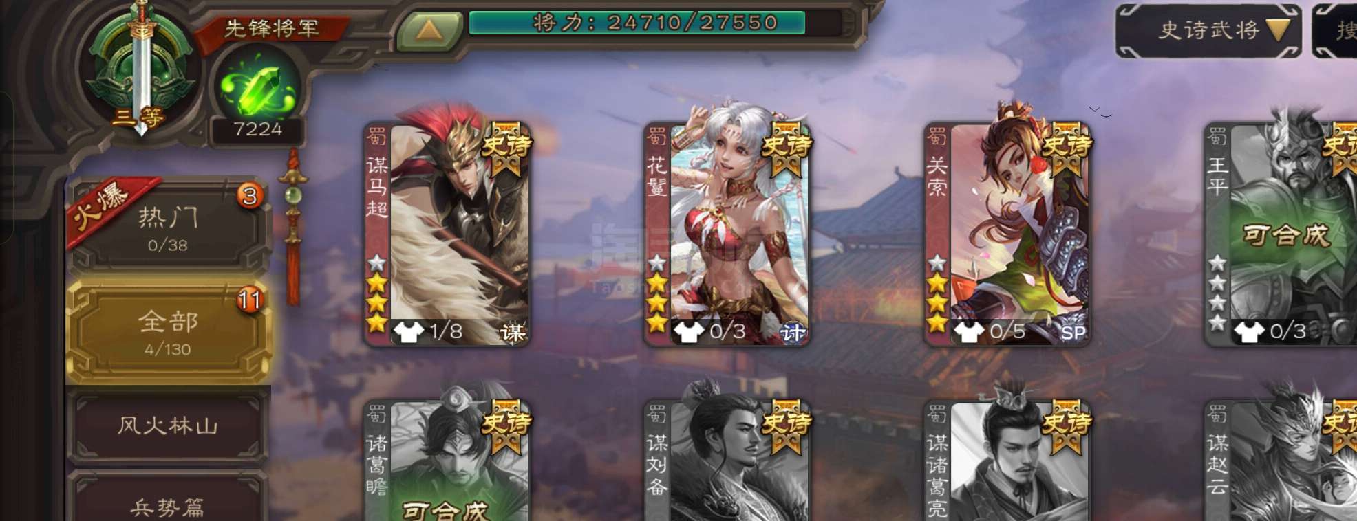 三国杀【安卓官方】7200魂5.3万羽毛,神吕布谋马超关索花鬘4史诗先锋,谋高顺孙邵崔琰141将