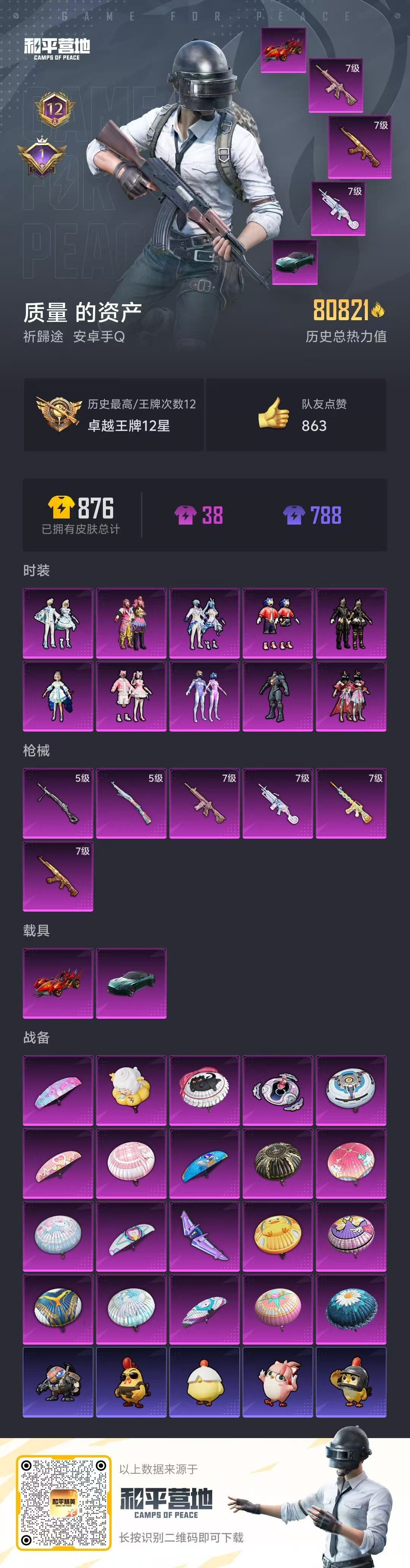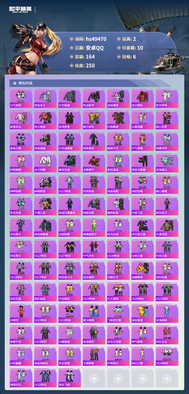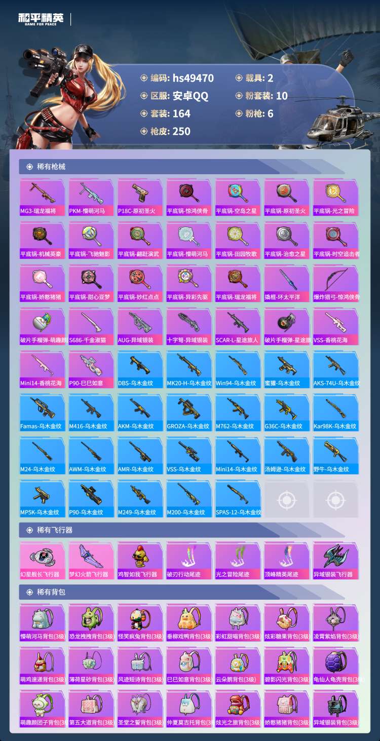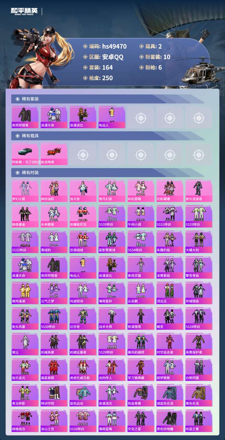 hs49470 安卓手Q-12王牌印记-10粉装-6特效枪-2载具-80821热力值-164套装-2