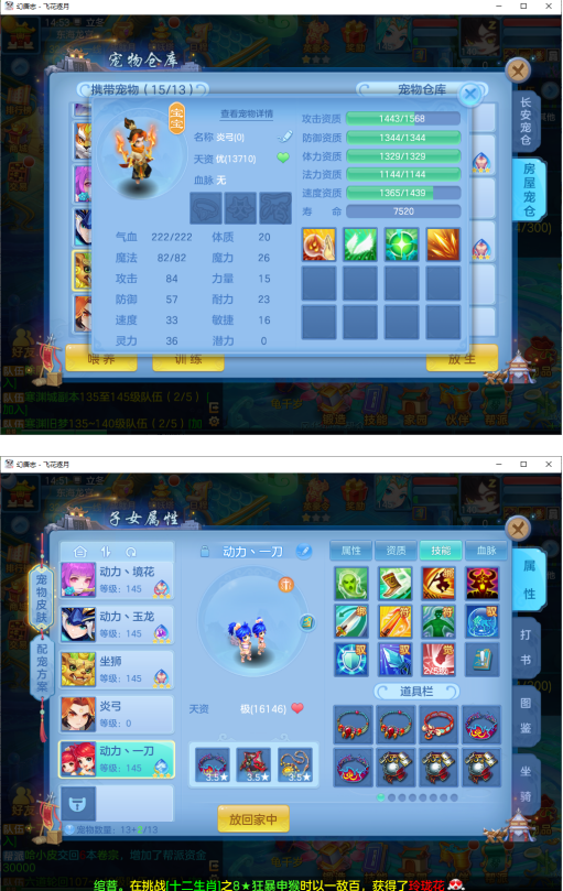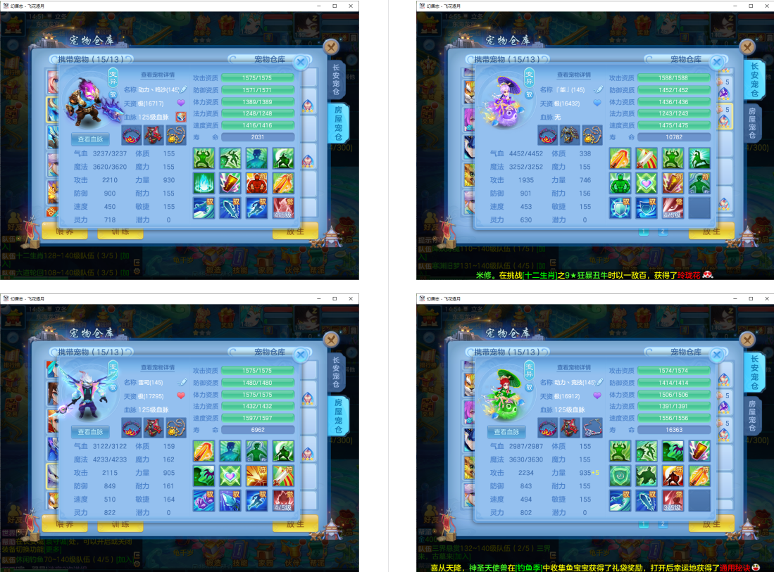 (140龙宫/男)(7天换绑/邮箱不送)飞花逐月/----4件14段2件12段,易成长,特技装,双内丹神(强化玉龙),9个6多特殊5,(1满魂兽),10红17黄,5专属血脉,4个宝宝皮肤,高级坐骑,360万银子,仓库还有资源,3326成就