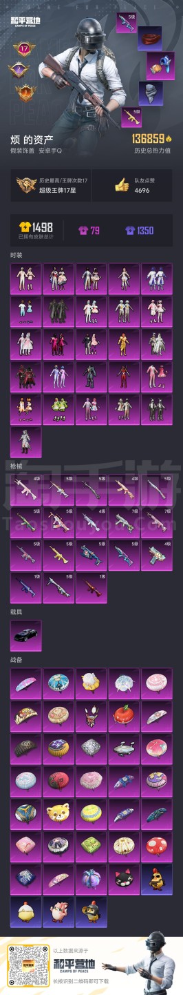 安卓q 可二次 26粉装 18粉枪 1载具 红螳螂 热门粉枪 热门装扮 灰熊背包 亮点:都市猎人 暗影哥特 奇异狩猎者 深海小丑鱼 浪漫波比 17印记 136859热力值