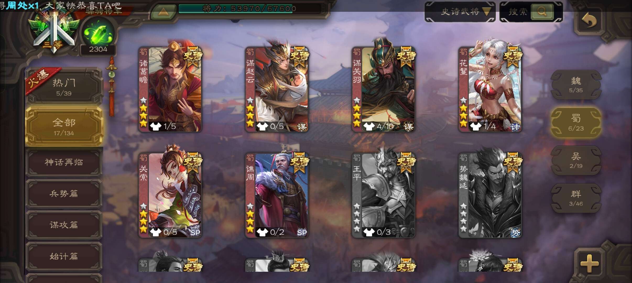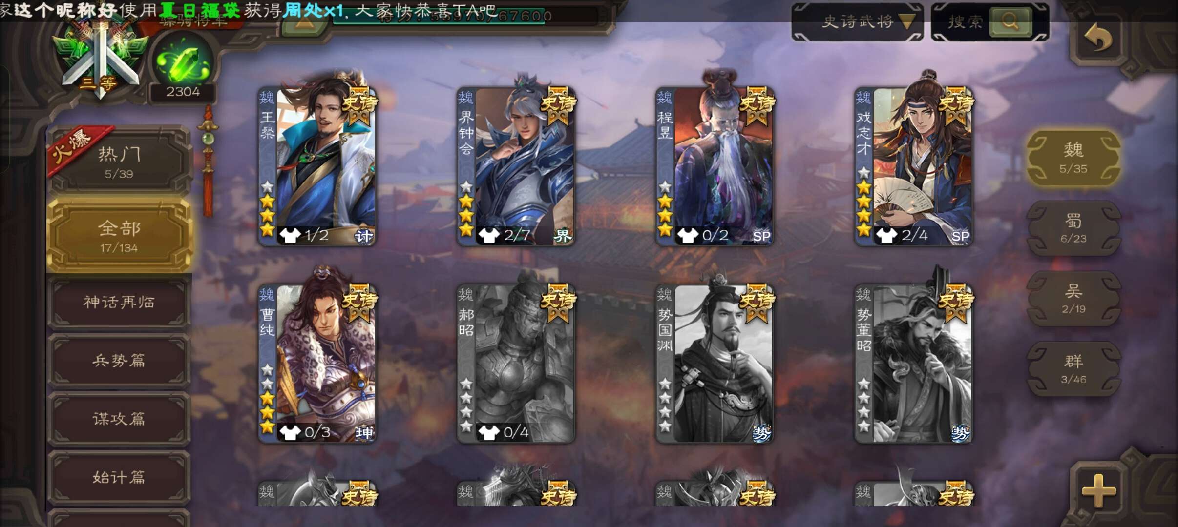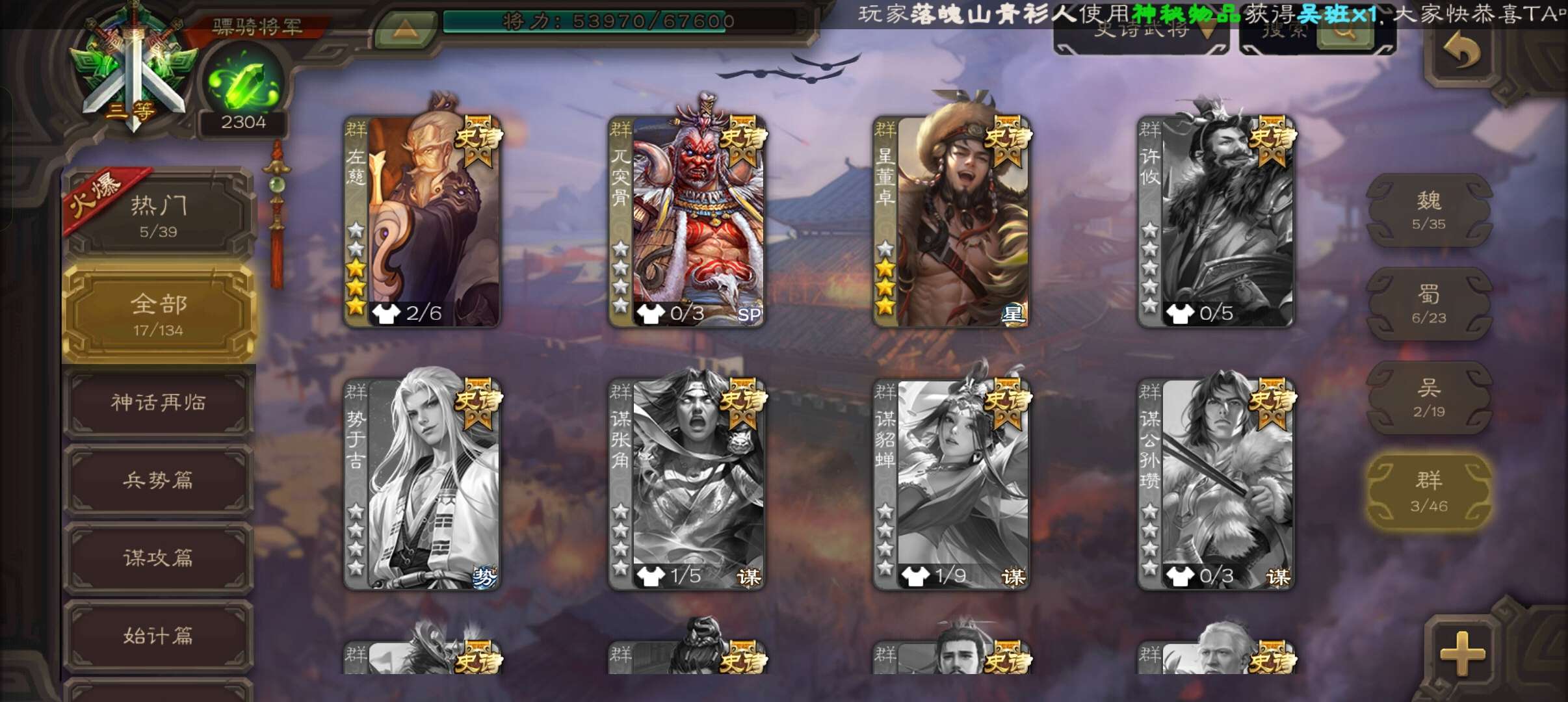 捡漏骠骑玉龙势太使慈/谋关羽/动戏子/界钟会17史诗无限多材料点将