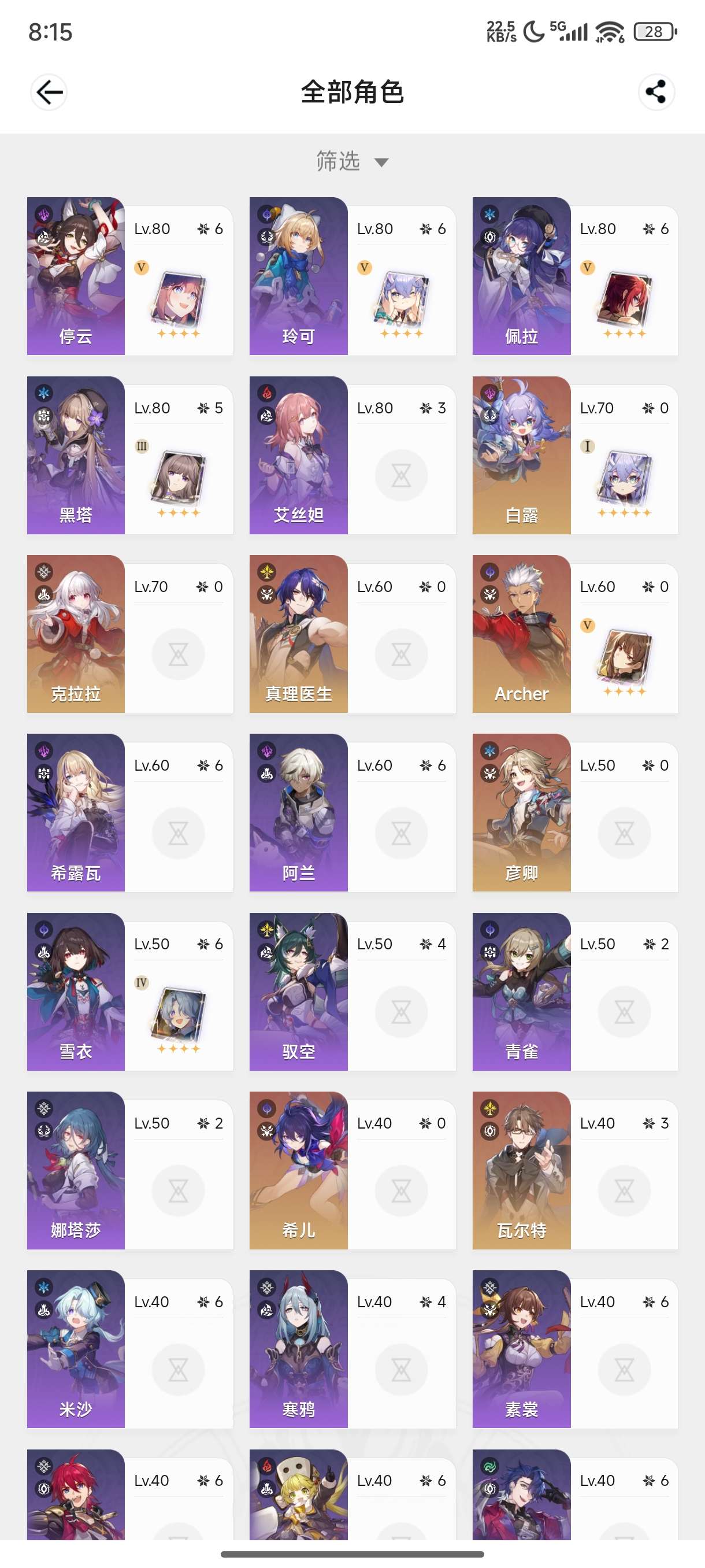 崩坏:星穹铁道【安卓官方】星穹铁道1+1缇宝周日昔涟0+1腾荒2+1黄泉,流莹击破队,飞霄追击低配。小毕业大保底已垫35抽。