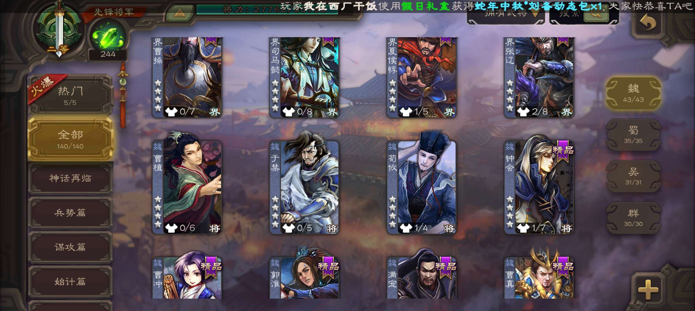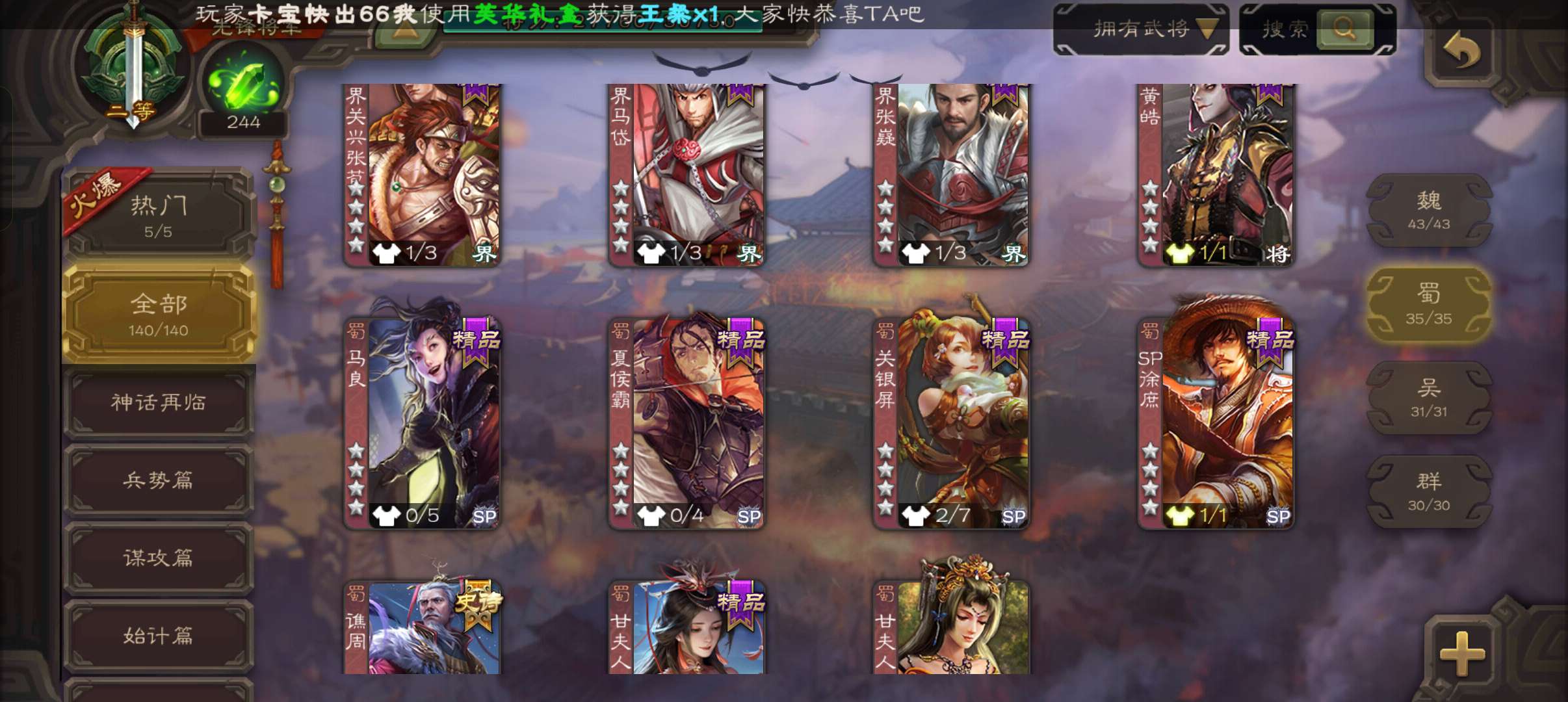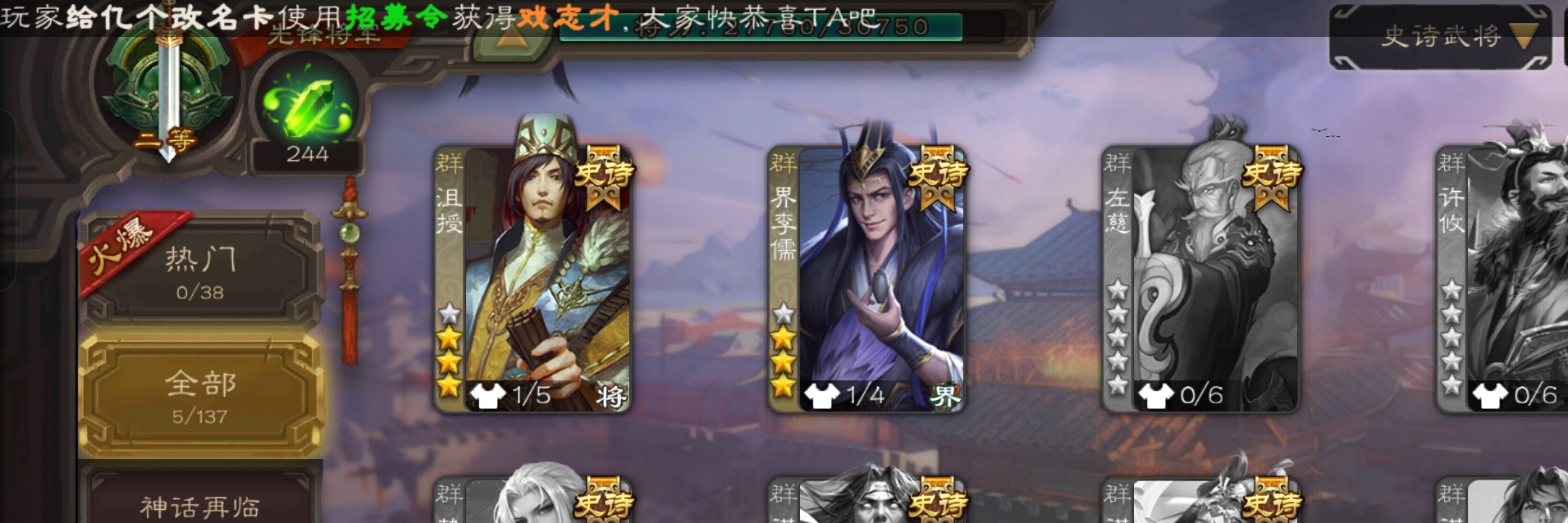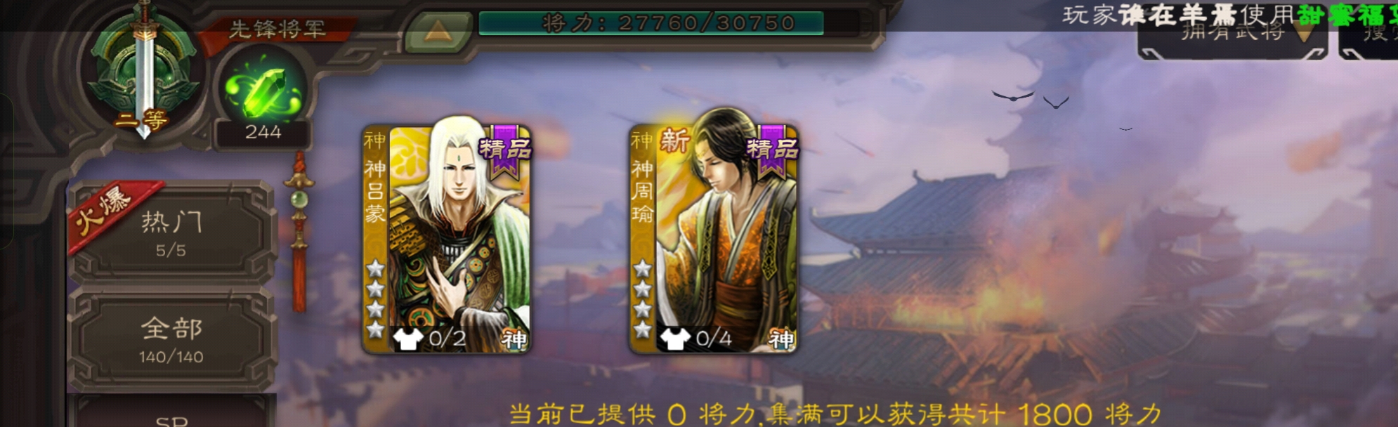 5万豆,天工闫象,回廊动界李儒动花鬘谯周界于禁沮授5史诗先锋,神周瑜神吕蒙谋韩当界孙权关银屏140将