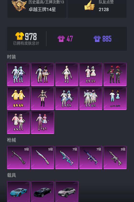 【HP70】安卓【公主号 13王牌印记 蓝螳螂 放客神游 天使彩虹糖 AKM-梦之光华满级 SCAR-L-青春物语满级】 手Q-12粉装-5特效枪-3载具-3粉色飞行器-80923热力值-13王牌印记-175套装-254枪皮