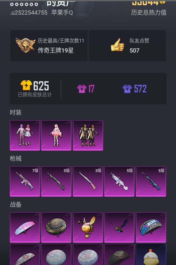 【HP65】苹果 【公主号 11王牌印记 都市猎人 奇异狩猎者 暗影哥特 天使彩虹糖 创世救赎 樱桃泡泡 SCAR-L-梦幻火箭满级】手Q-3粉装-5特效枪-0载具-2粉色飞行器-53644热力值-11王牌印记-126套装-195枪皮