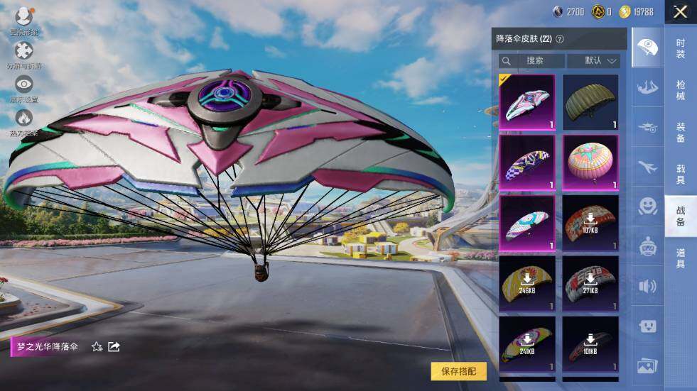 【粉色降落伞】:四圣焕新降落伞,心之恋语降落伞,王牌四分卫降落伞,梦之光华降落伞
