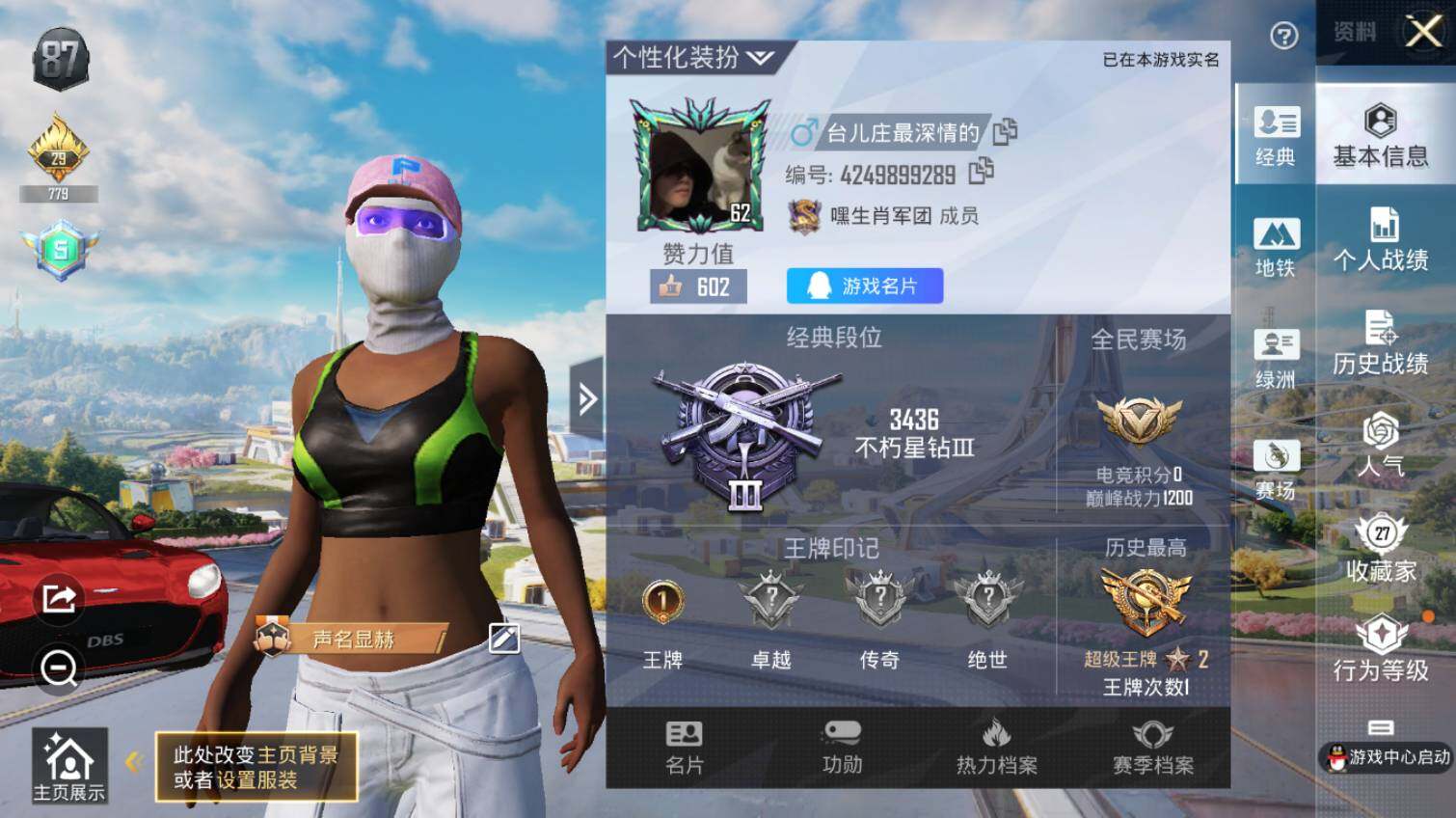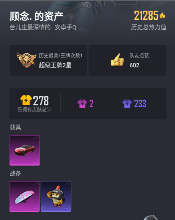 【HP20991】安卓 【小号/阿斯顿马丁DBS(红)】手Q-0粉装-0特效枪-1载具-0粉色飞行器-21285热力值-1王牌印记-77套装-63枪皮