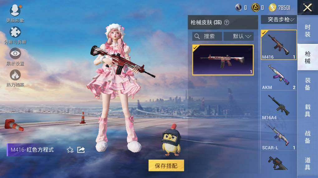 【稀有枪皮】:AKM-生命誓言,SCAR-L-炫彩节奏,M416-红色方程式,A