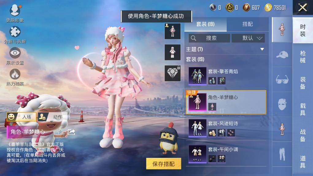 【稀有套装】:套装-朱霞炽焰,套装-凌霄紫焰,套装-擎苍青焰,玩偶服-美羊羊,玩偶服-喜羊羊,角色-紫俏灵猫
