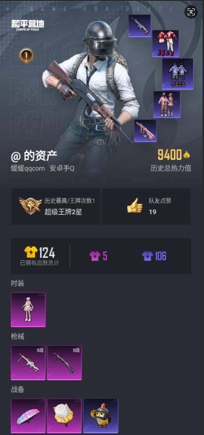 【HP20244】安卓【小号/1粉装-2特效枪/】 手Q-9400热力值-1王牌印记-19套装-35枪皮