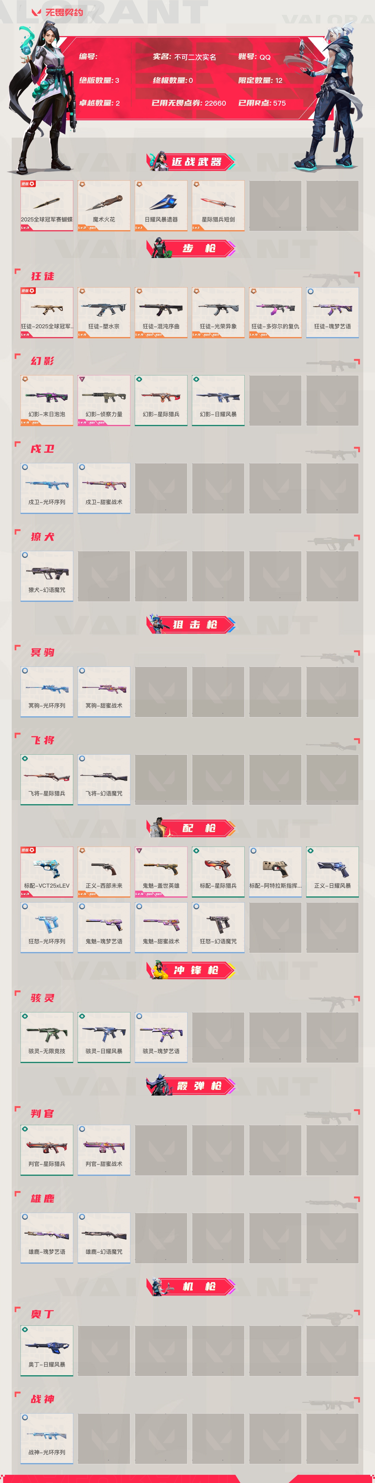 无畏契约【端游】刀皮数量4,枪皮数量36(绝版3限定12终