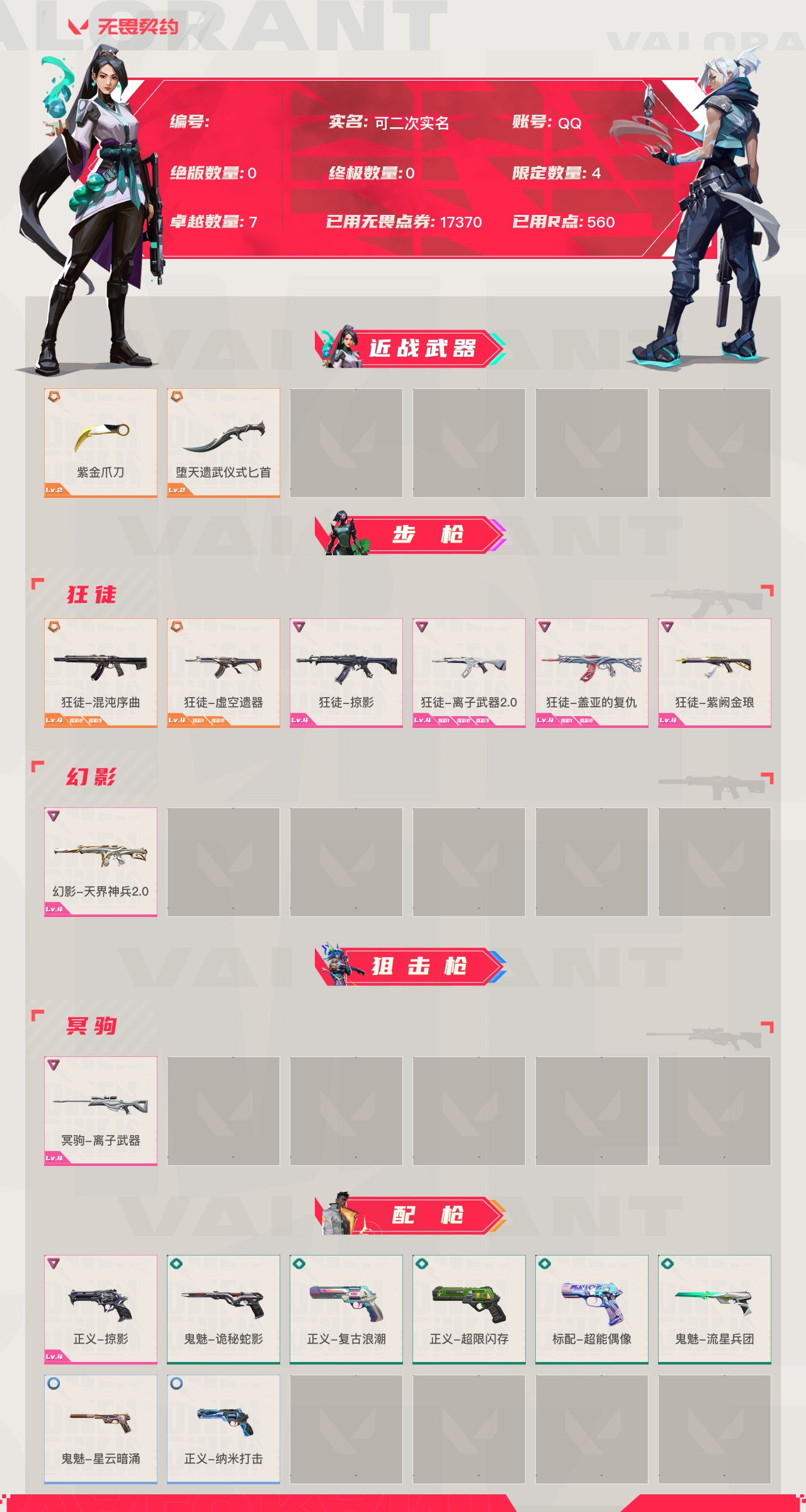无畏契约【端游】刀皮数量2,枪皮数量16(绝版4终