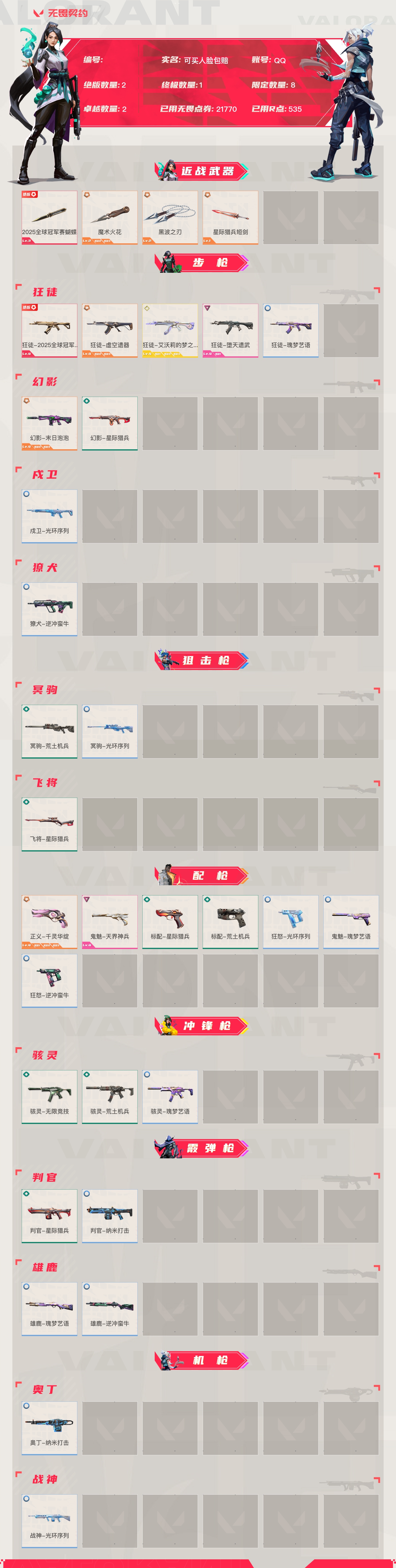 无畏契约【端游】刀皮数量4,枪皮数量28(绝版2限定8终级