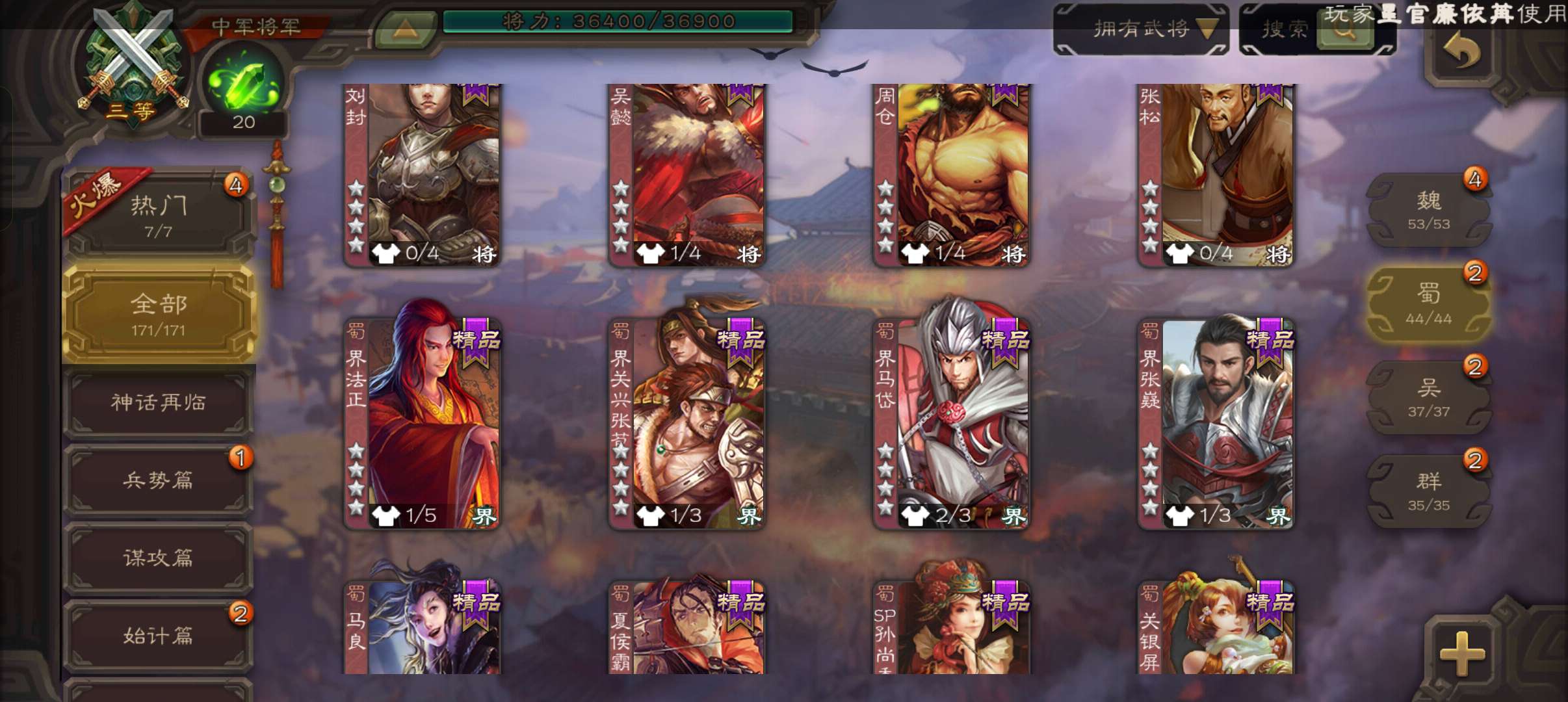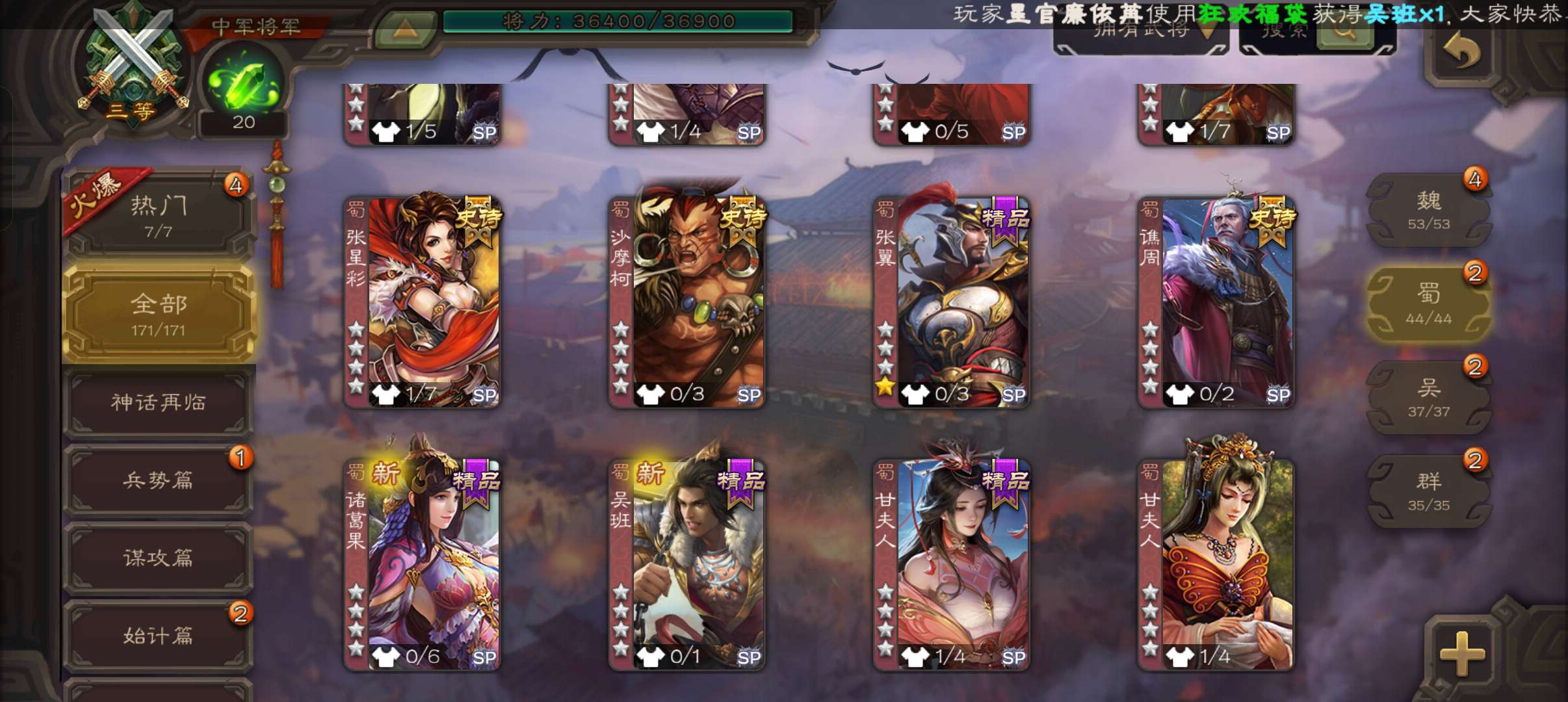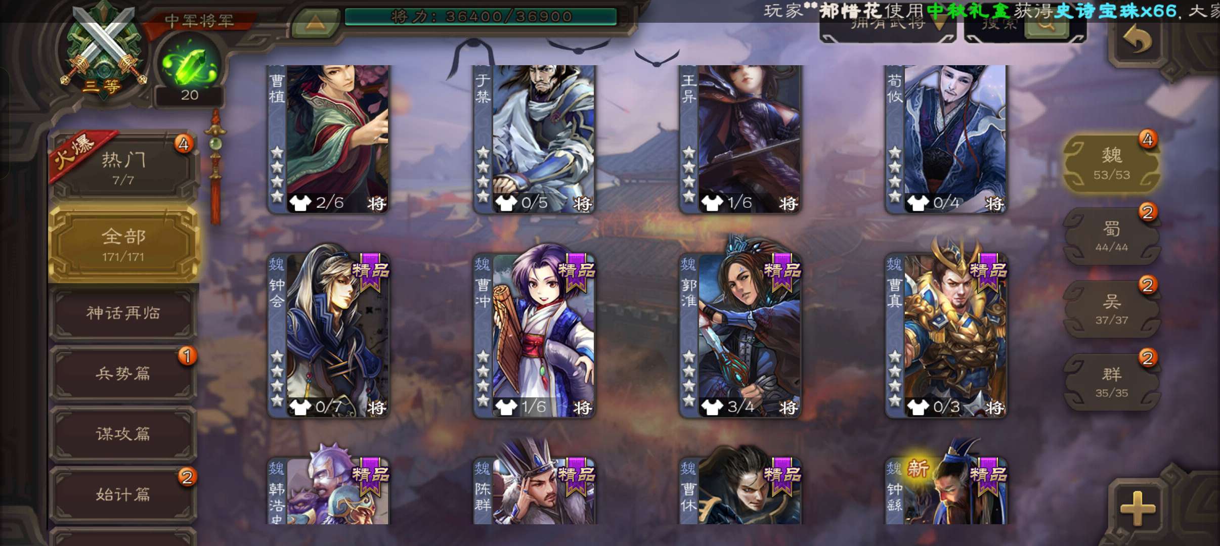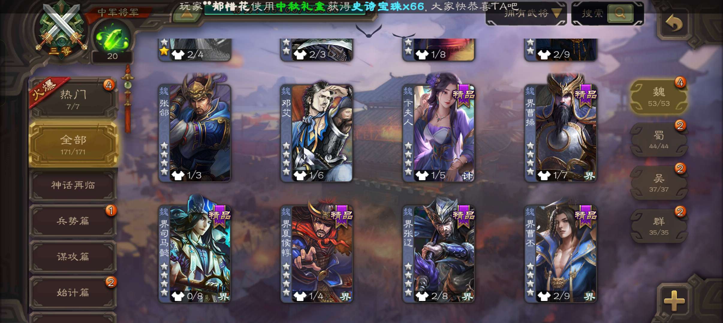 史诗武将数量: