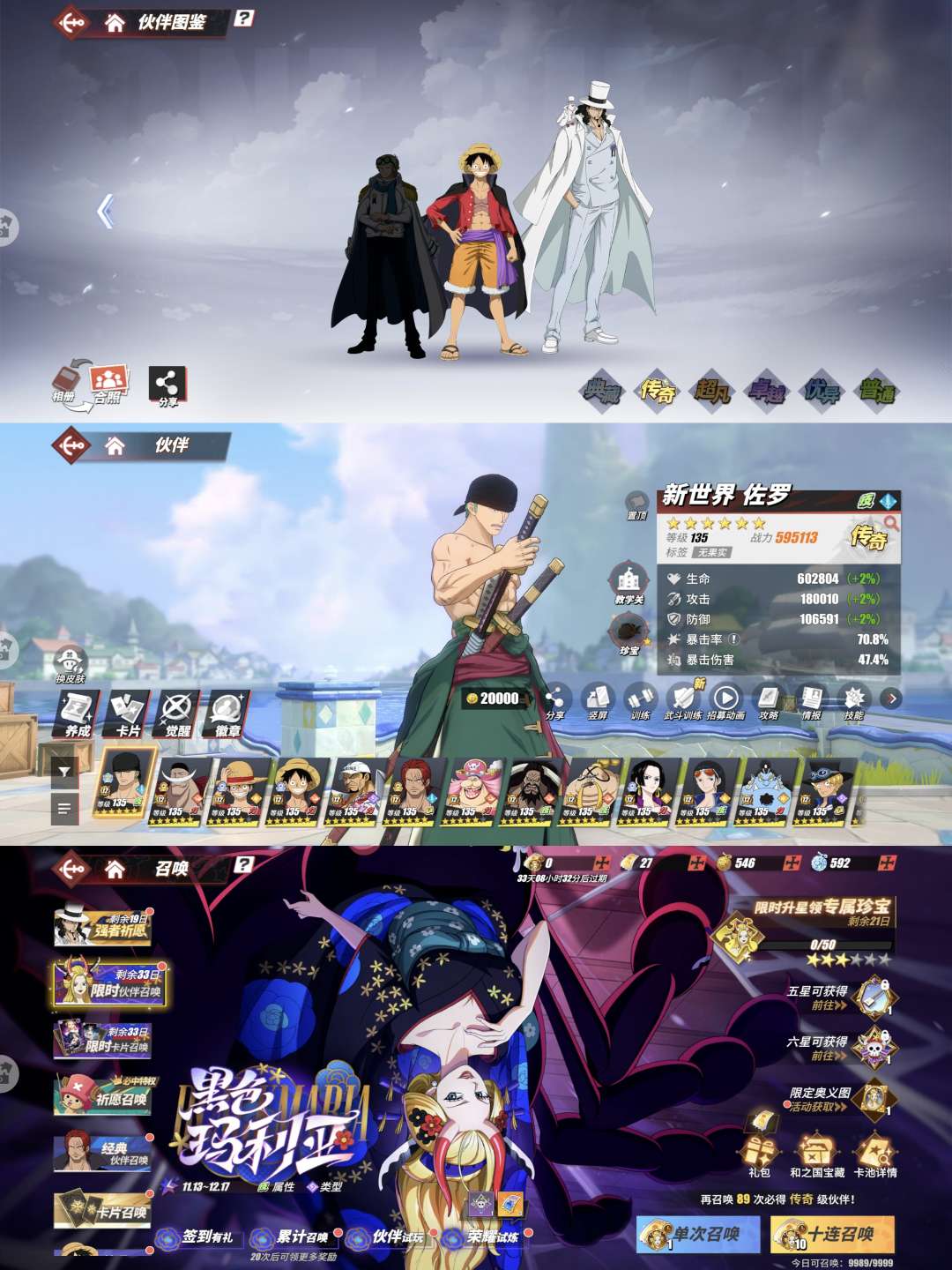 航海王热血航线【安卓华为】7730万战力。5个98友情技。玛利亚84传奇15强者4典藏。6星:新索隆。白胡子。鬼岛路飞。元帅