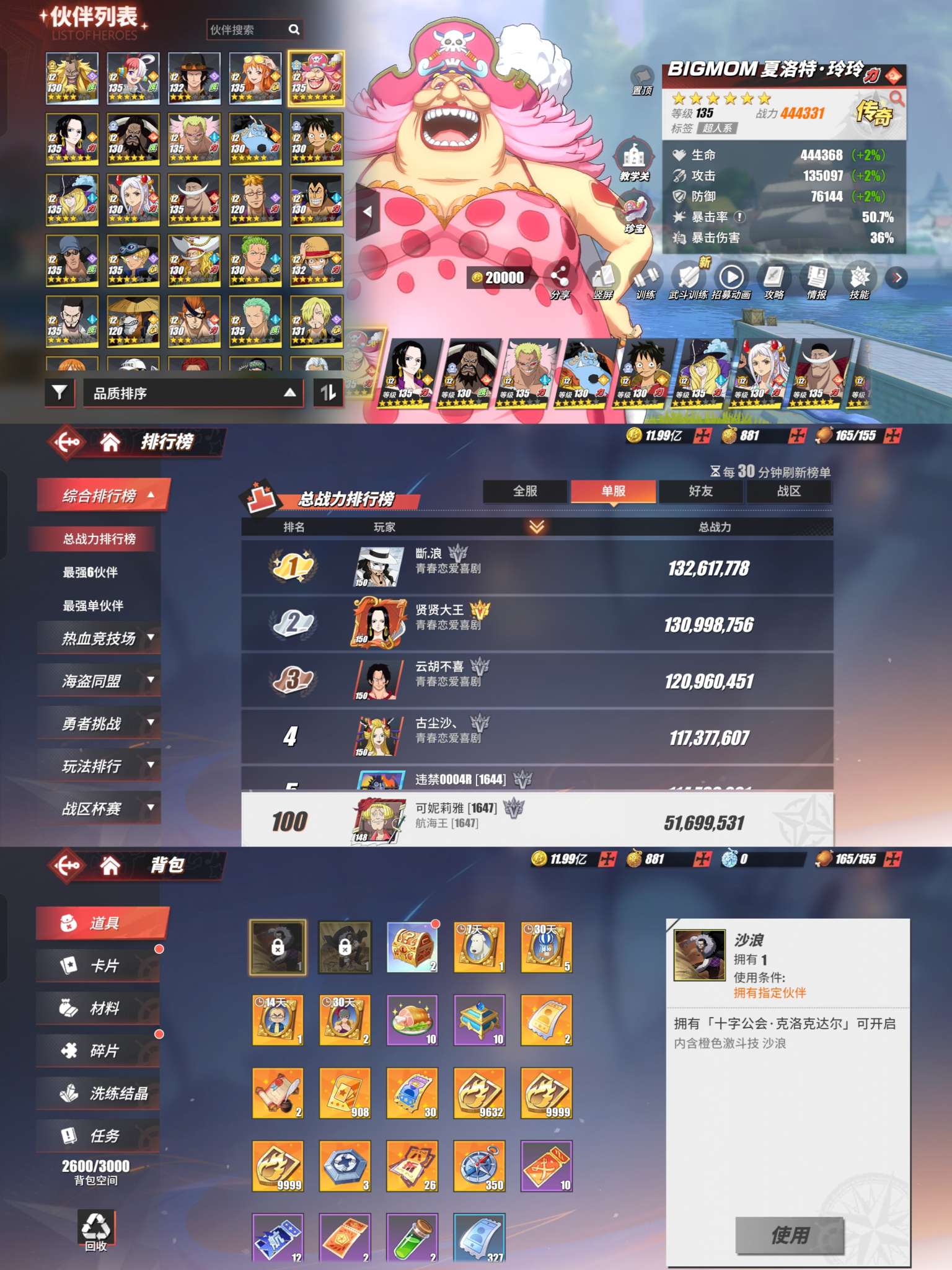 航海王热血航线【安卓B服】5100万80传奇12强者 基本全图鉴 双98友情技 金狮子神船 b服安卓都能玩
