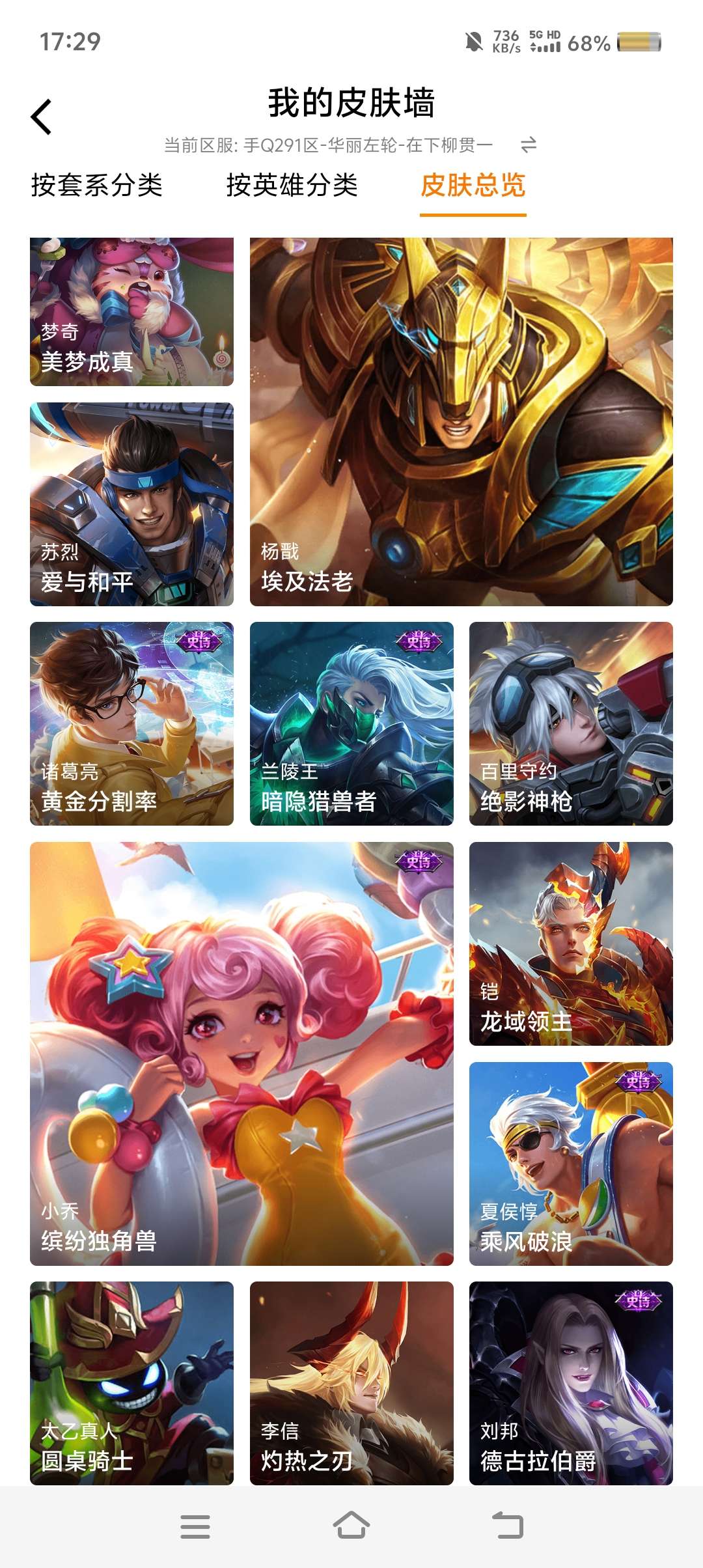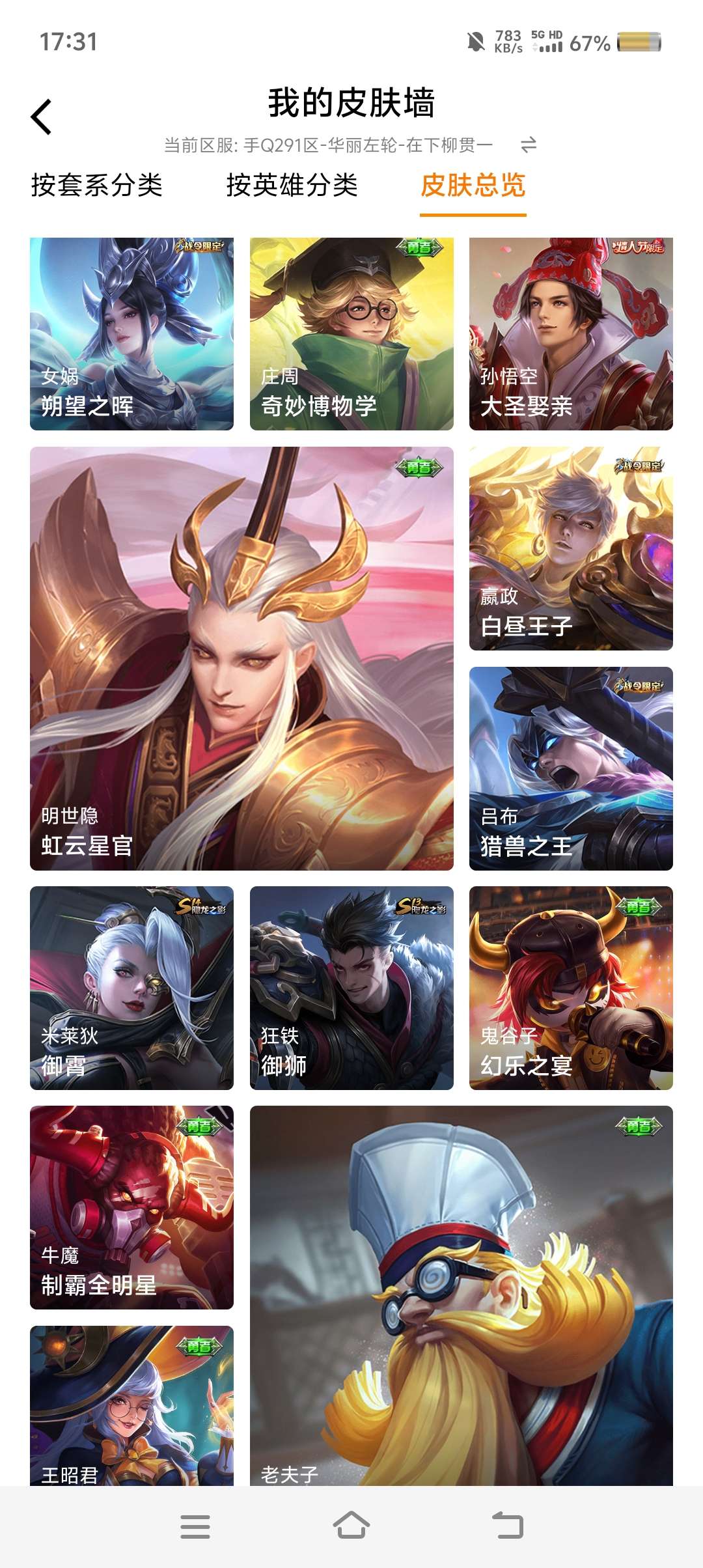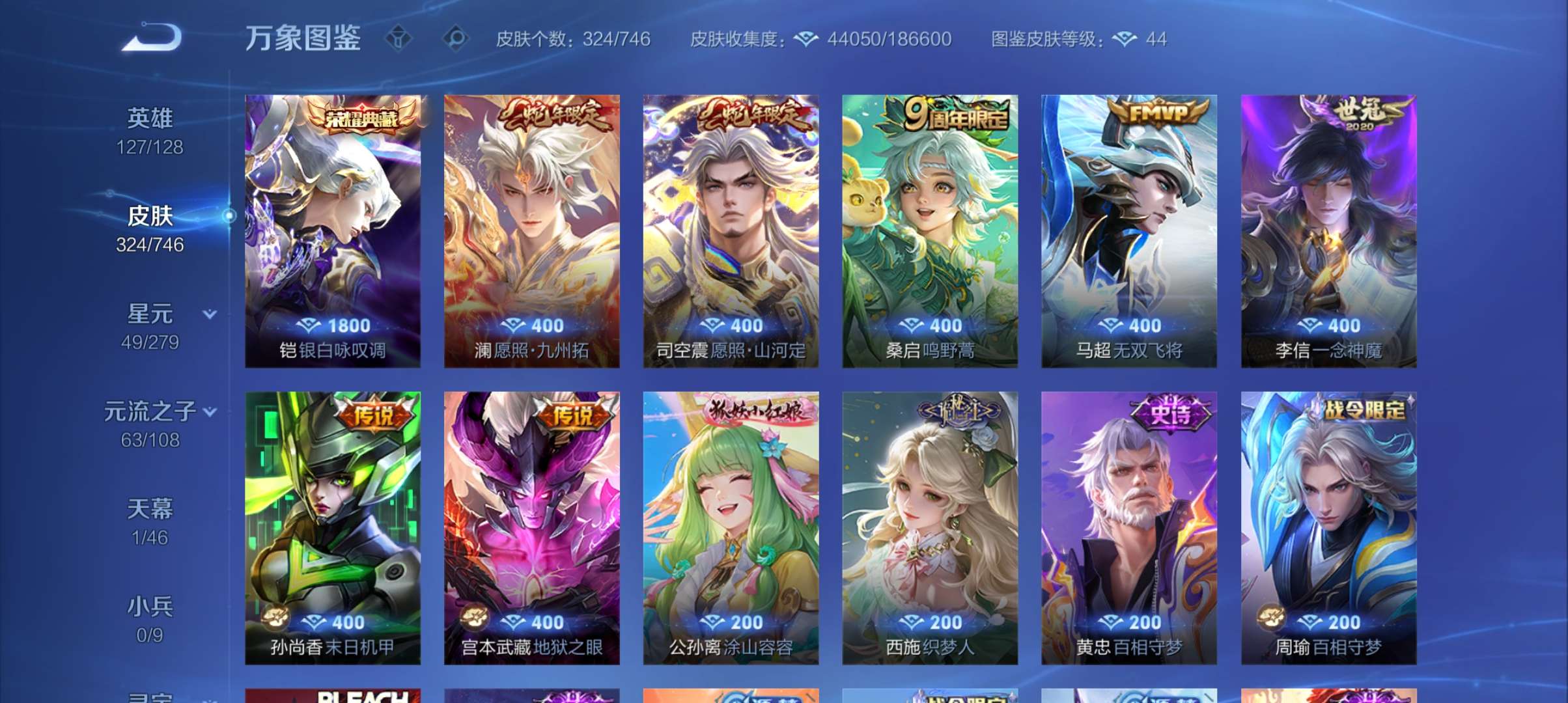 贵七,324皮肤,七传说,127英雄,暗区有刀(20M)。还有火影有9S是21A