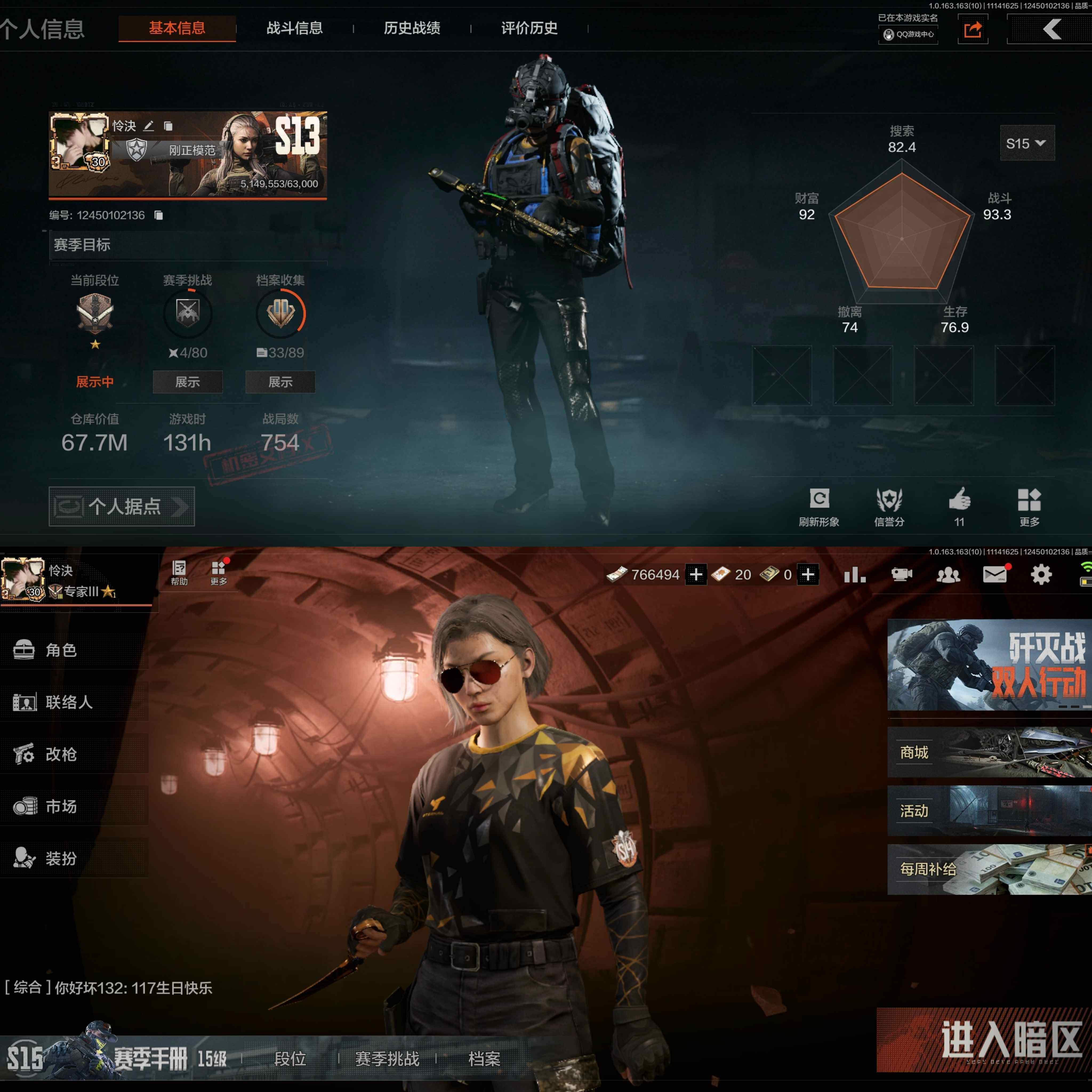 v77,3把刀赢家匕首苍穹利爪,7黄枪,仓库67.7M,5外观,旗帜旧王圣谕浮