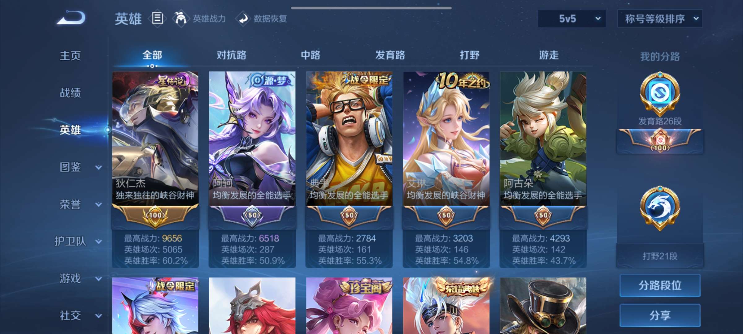 五千次排位狄仁杰60胜率加韩信典藏皮肤