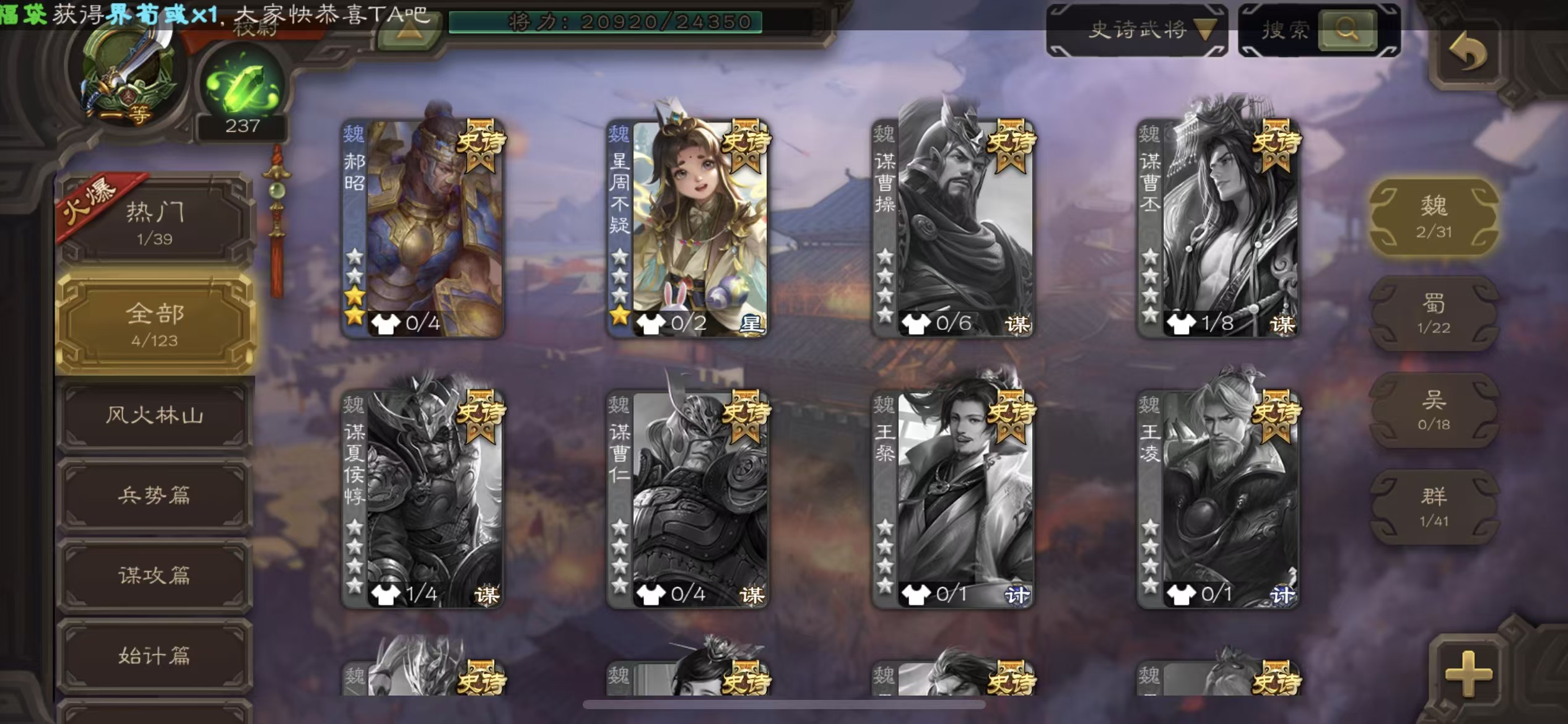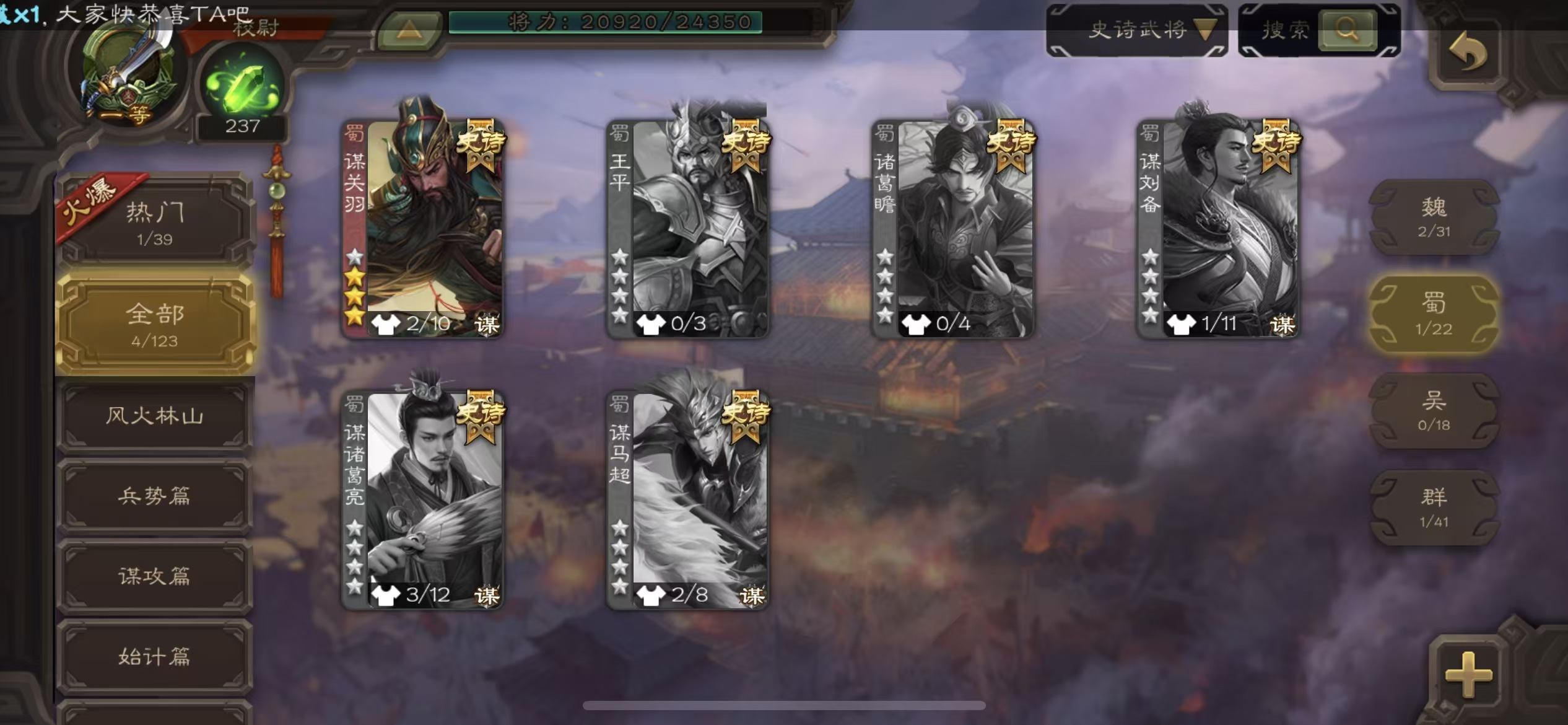 史诗武将数量: