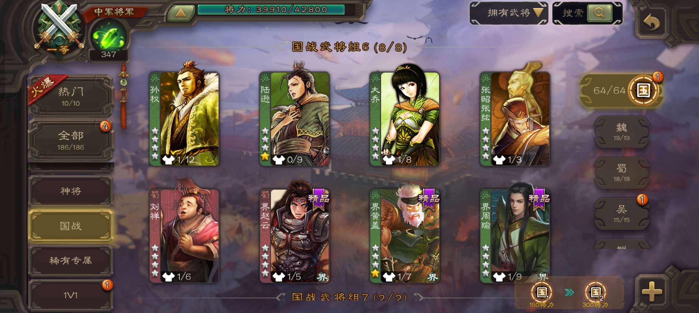 9史诗双神双天工中军,谋大乔文钦,玉龙回廊动大宝神刘备谯周界于禁陈琳嵇康杨修左慈程昱,界廖化神周瑜