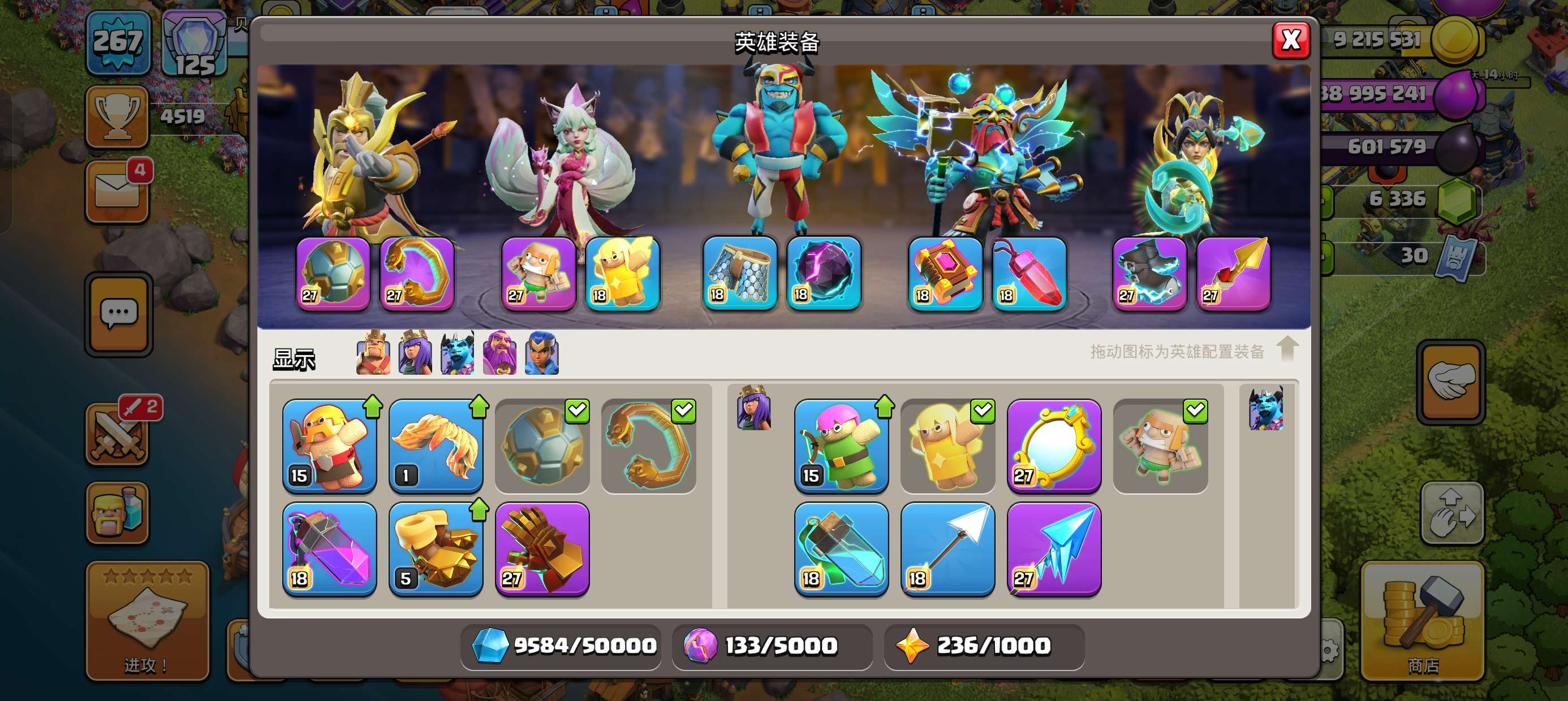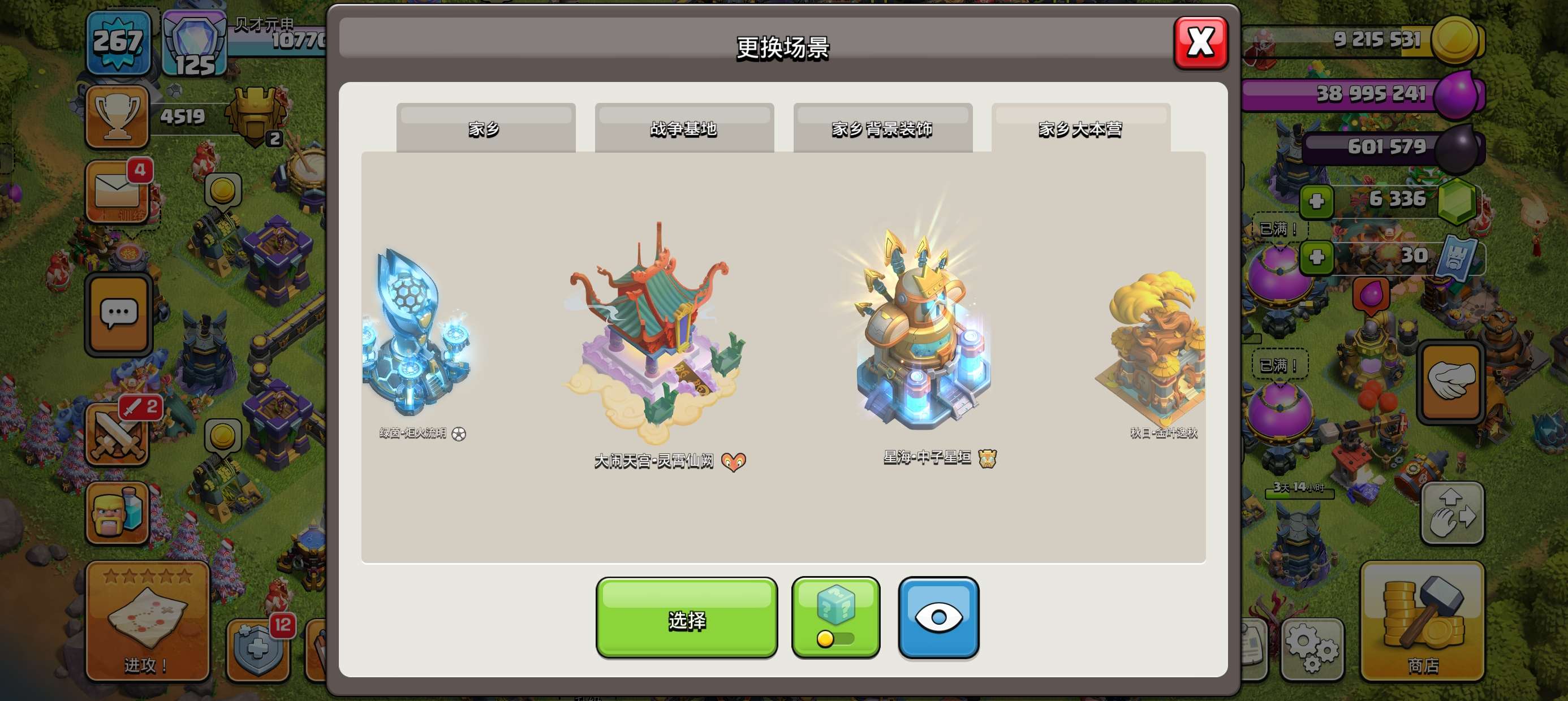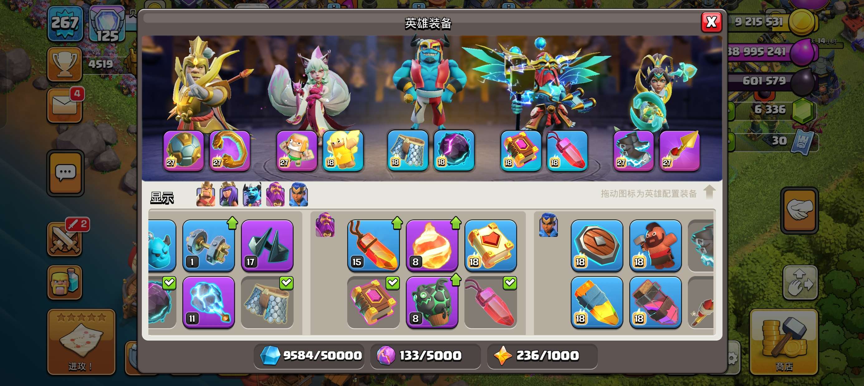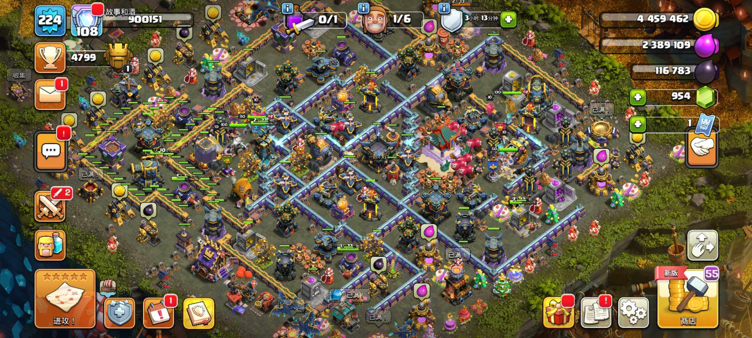 部落冲突【安卓QQ】部落冲突17本满125繁荣,皮肤非常多,质量非常高,两个大场景,多个付费小场景。常用史诗八满