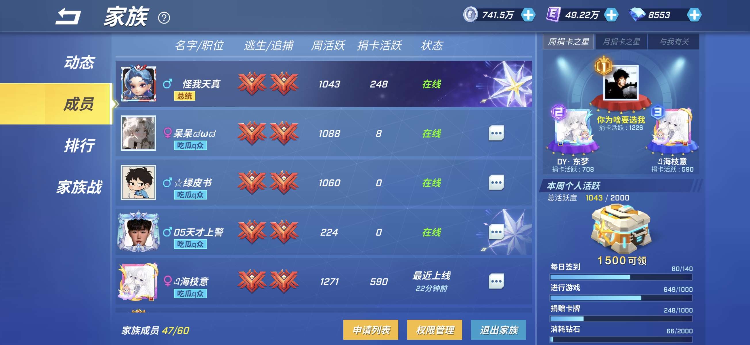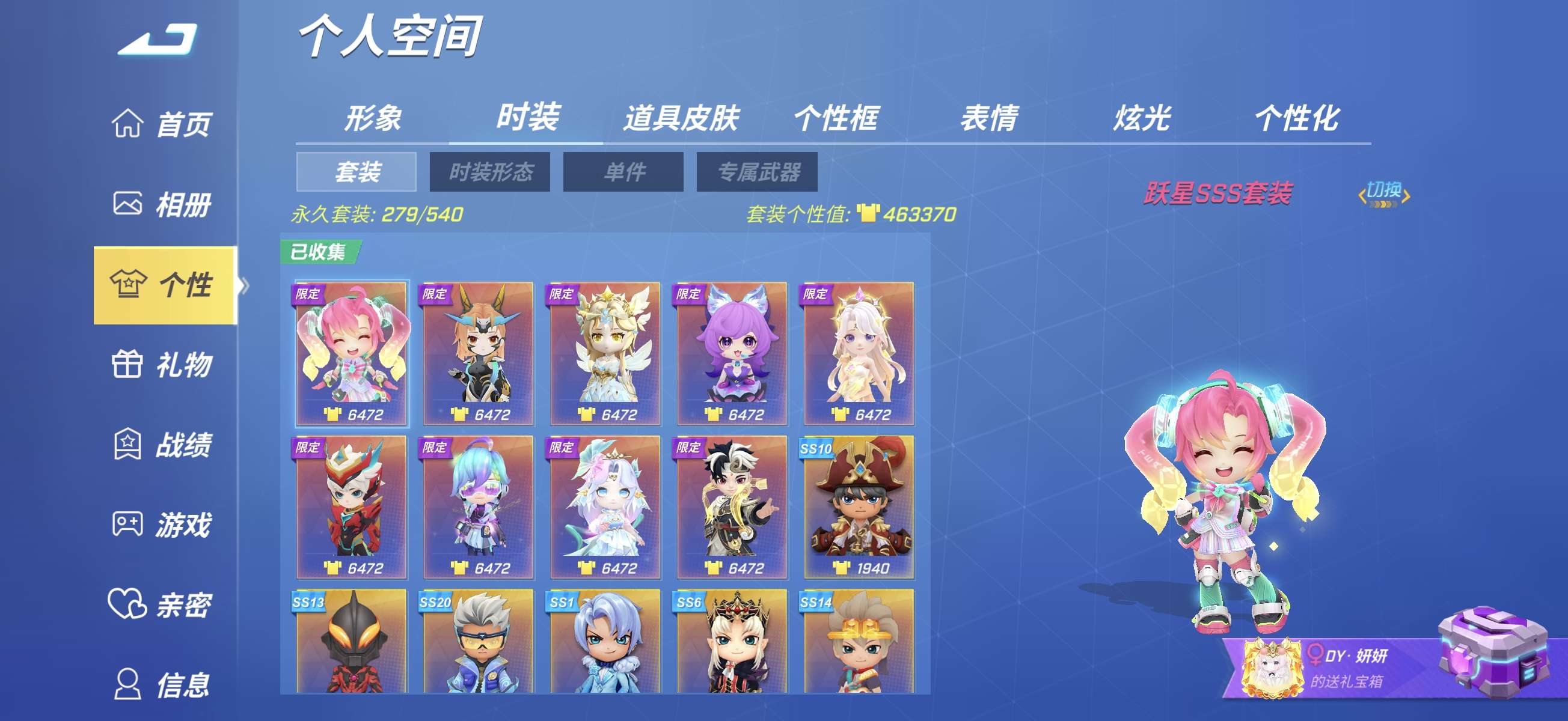 逃跑吧少年千星 200w个性值账号带热度榜一气泡加60人家族加8千钻石50万点券,绝版皮肤多,自己看