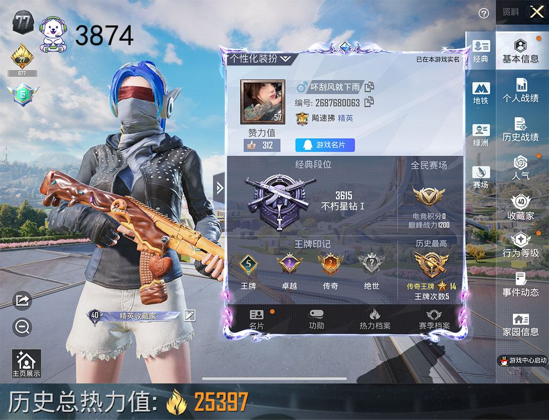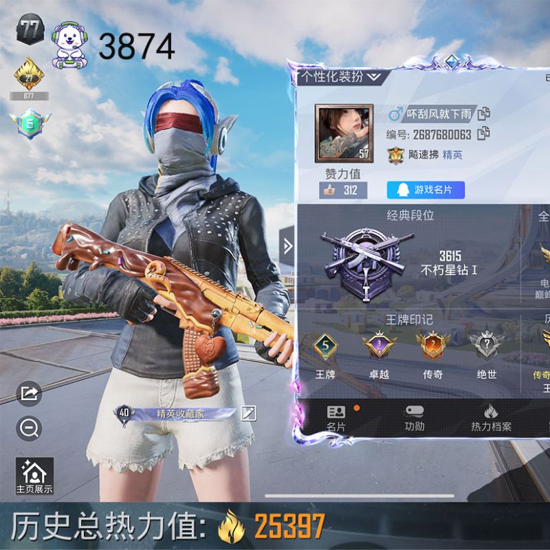 和平精英【苹果QQ】7粉4枪梦幻火箭彩虹糖奶油派白芍甜心AK七级都市深海鱼红眼罩