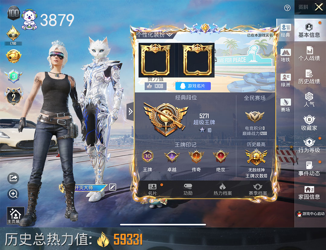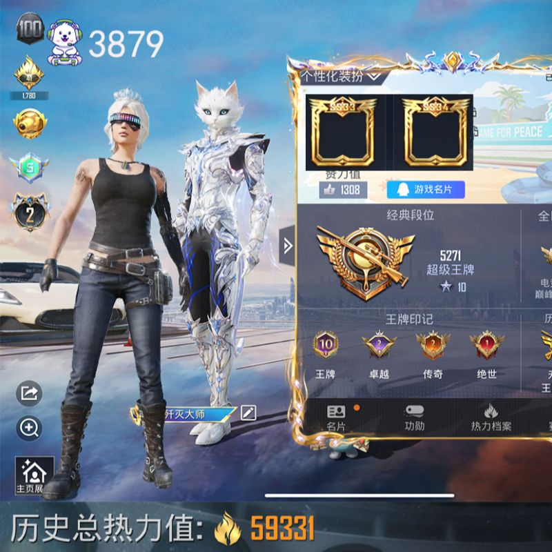 和平精英【苹果QQ】战神框灵猫魔法师二级2车6枪9粉金鞋天网雪国电眼梦幻火箭