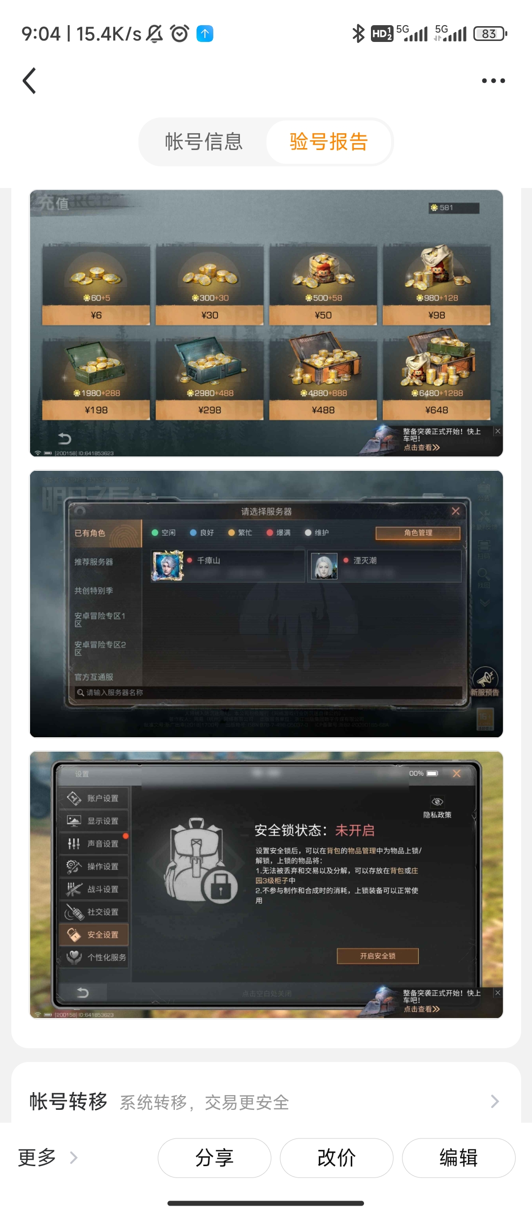 通过App,与卖家商议价格及保险,并向卖家索要账号最新截图,确认后下单购买。