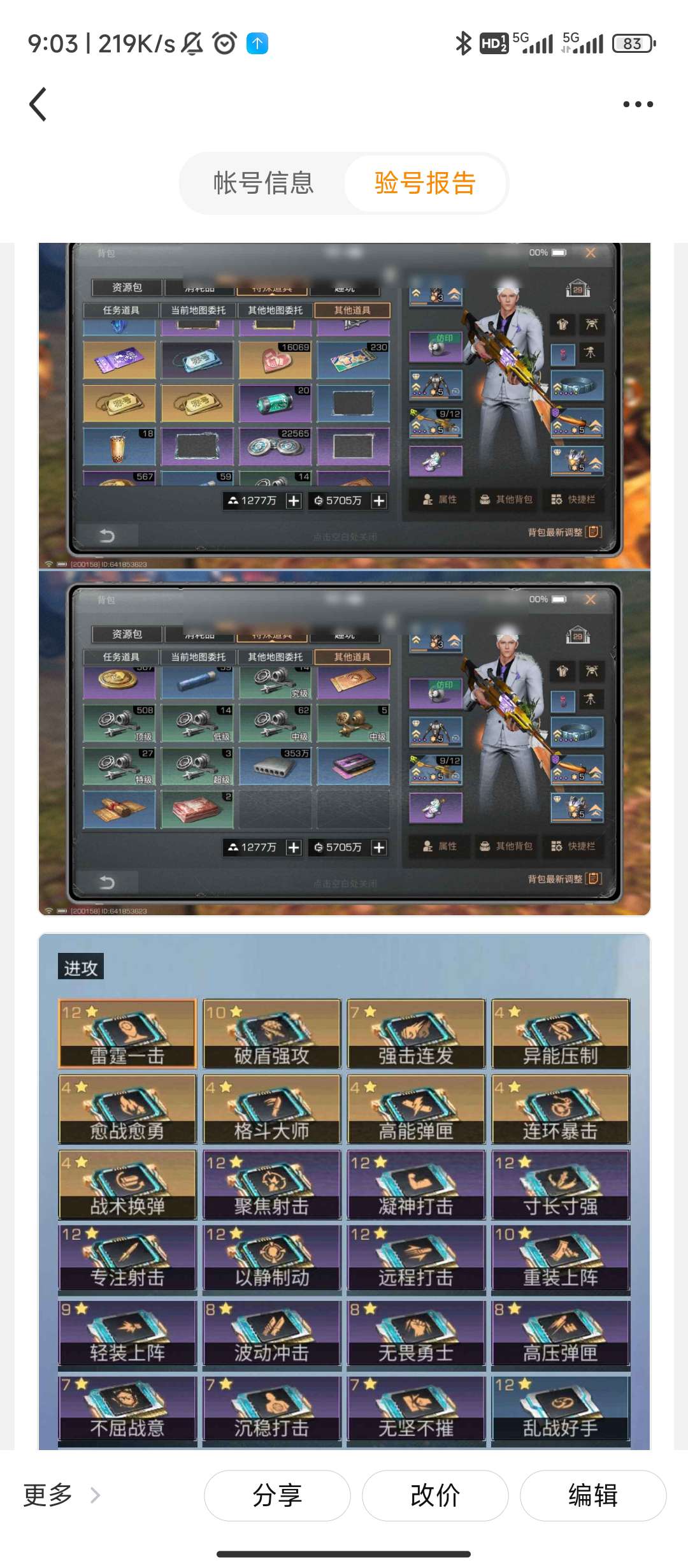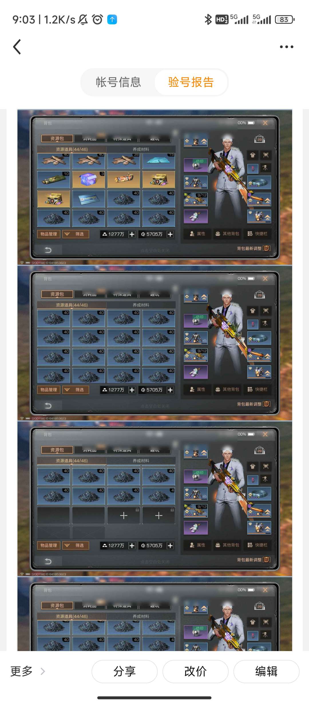 1277w金条581太阳20个电池5星电狙8600多微晶1100多草木灰 两个自选核心箱17级腰带